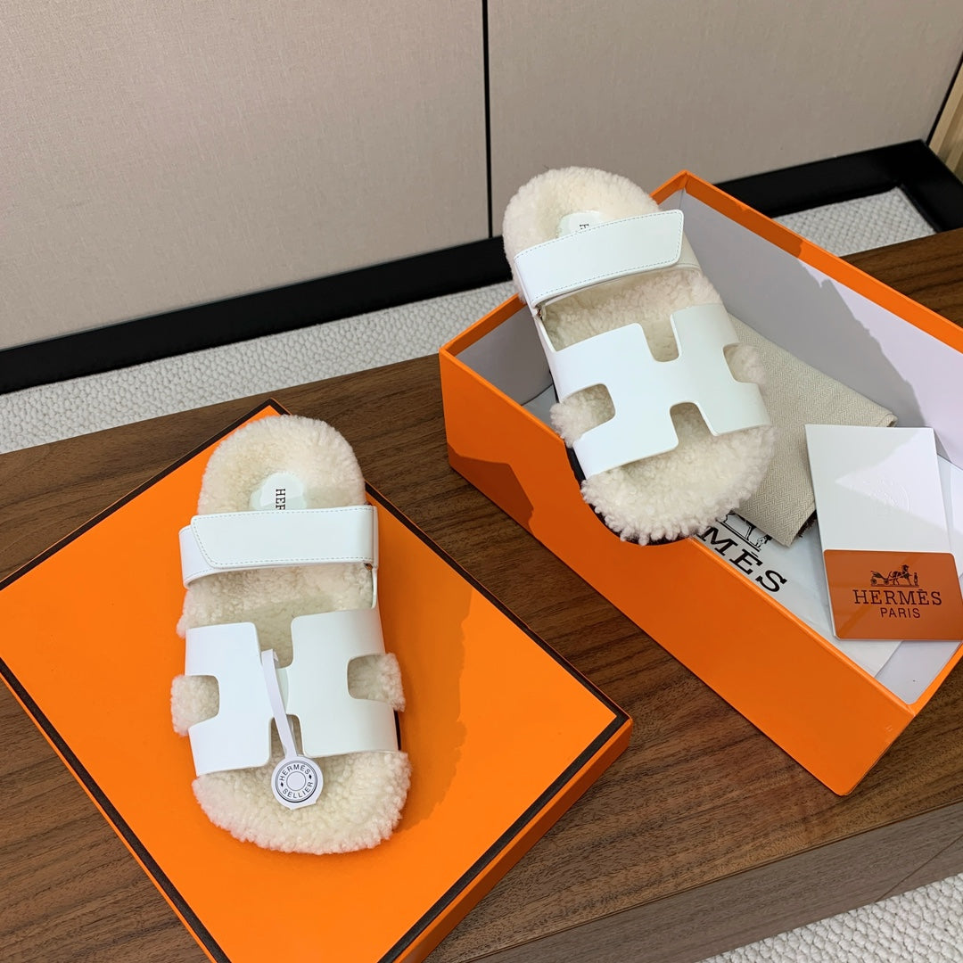 HM Chypre Sandal White Mix Light Beige Wool And Cowhide Lining 984210