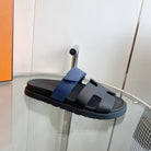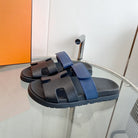 Chypre Sandal Black with blue straps Leather