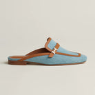 - Material: Mule in H canvas and calfskin with miniature permabrass-plated Paris buckle and contrasting piping.