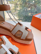 • Material: Denim and Goatskin, wedged rope heel