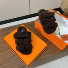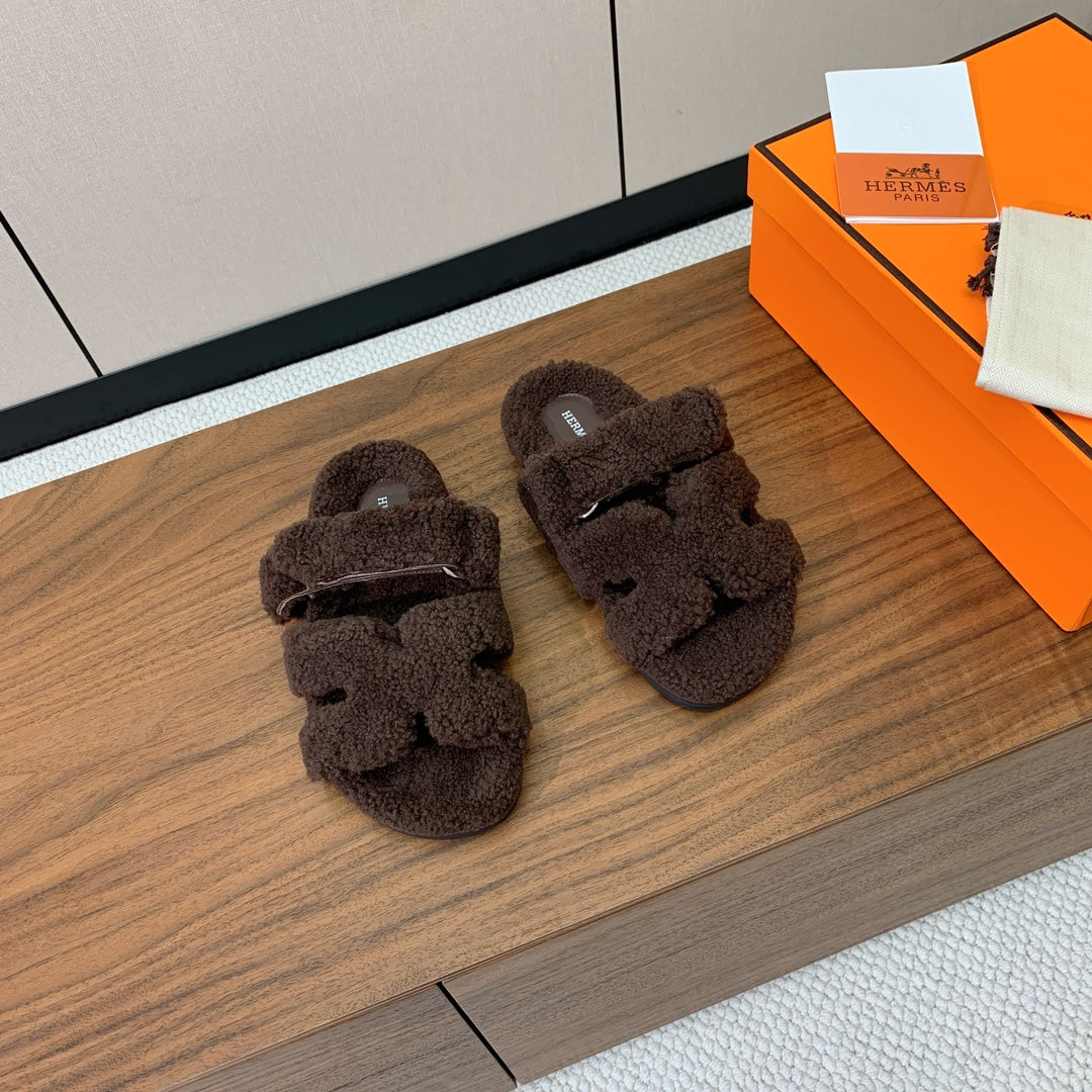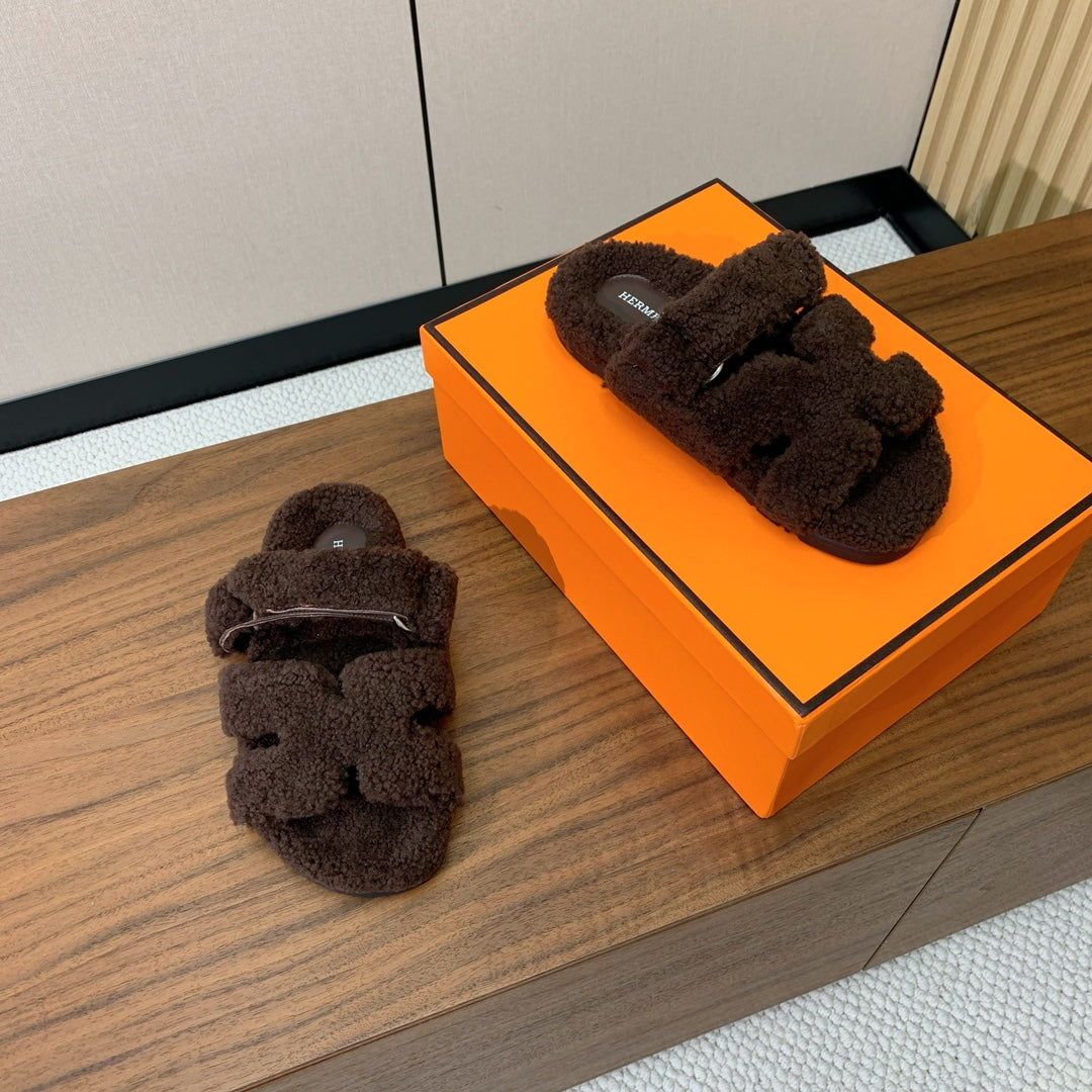 HM Chypre Sandal In Dark Brown Lamb Wool 984179