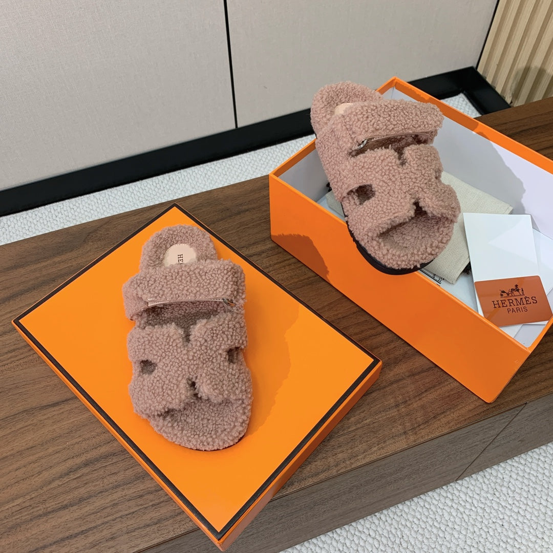 HM Chypre Sandal In Light Pink Lamb Wool 984184