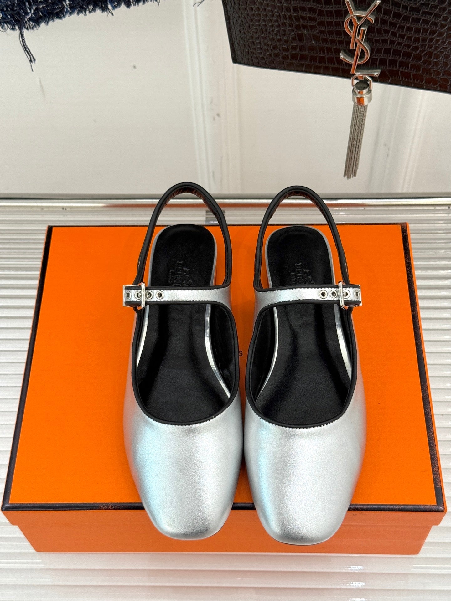 HM flat sandals sliver lambskin 474119
