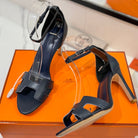 HM Joy 90mm Heeled Sandals Navy Blue Flat Cowhide 294923