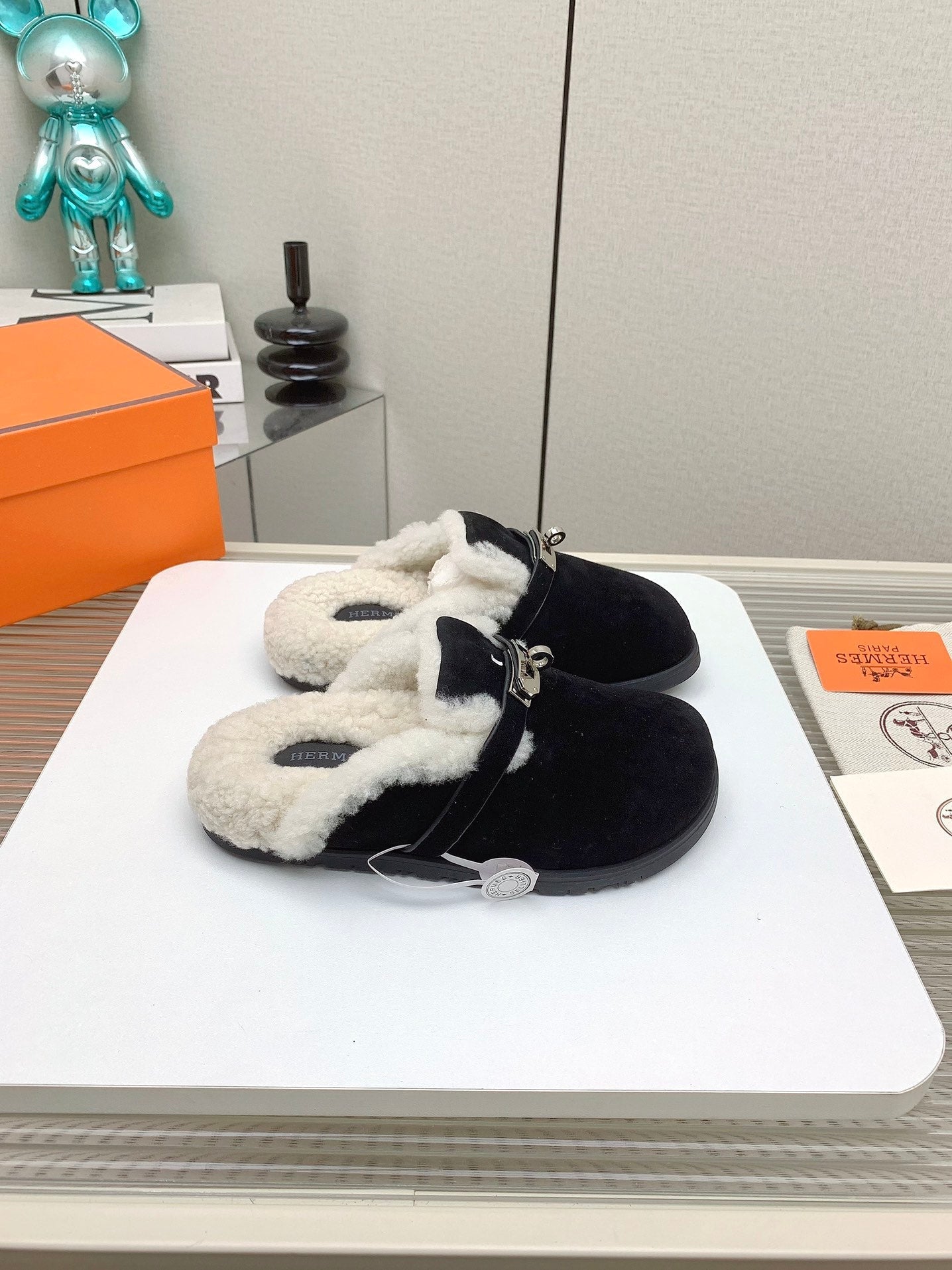 HM Mule 30mm In Black With Fleece And Suede Lining 971392