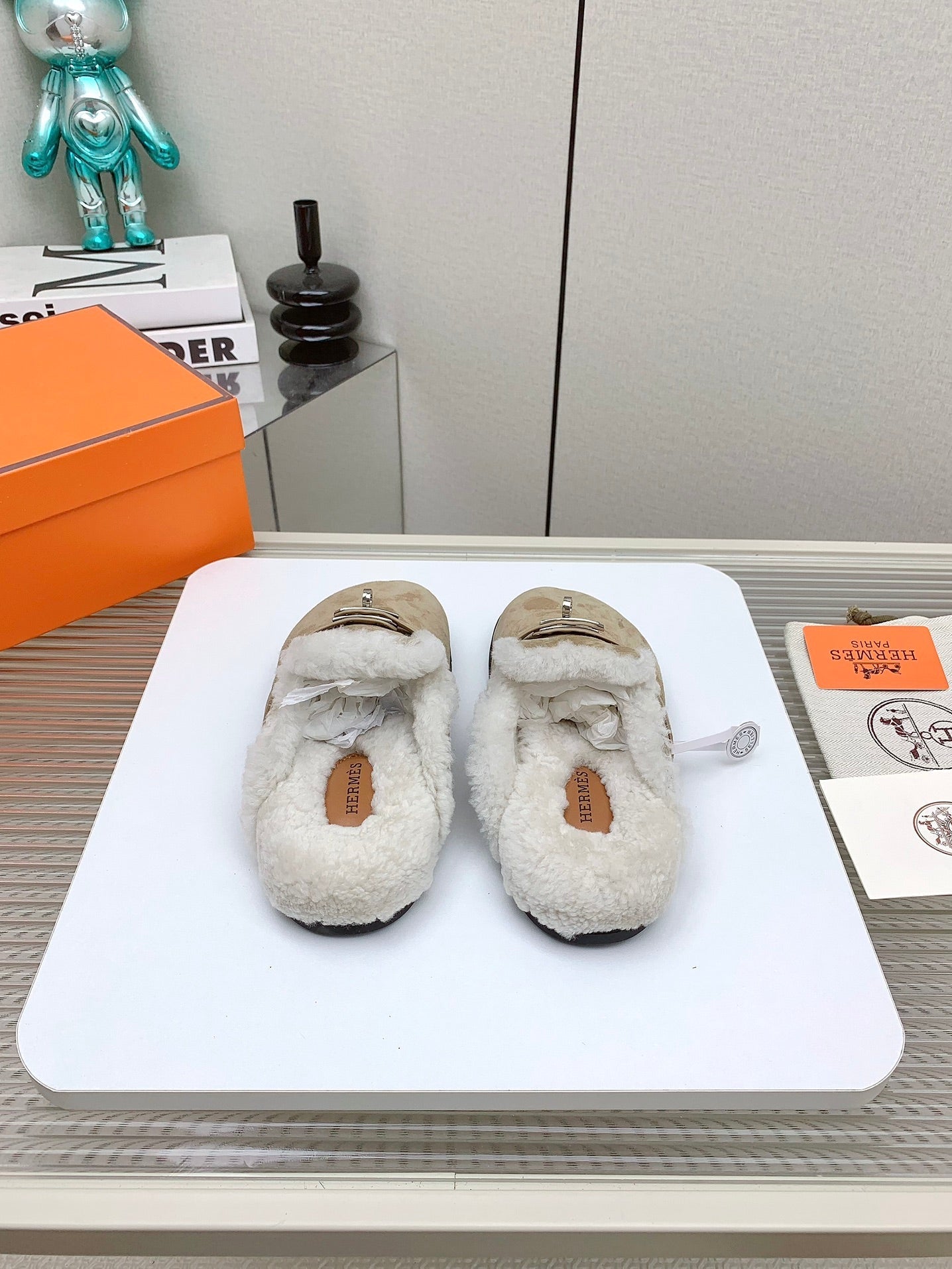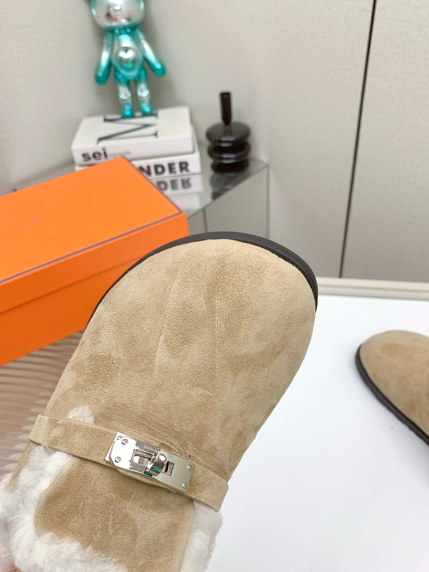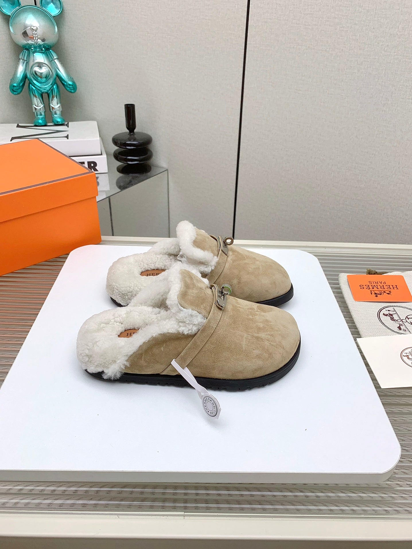 HM Mule 30mm In Light Brown Beige With Fleece And Suede Lining 971396