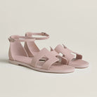 • Material: Sandal in calfskin with straight cut edges, "H" cut-out detail and thin ankle strap.