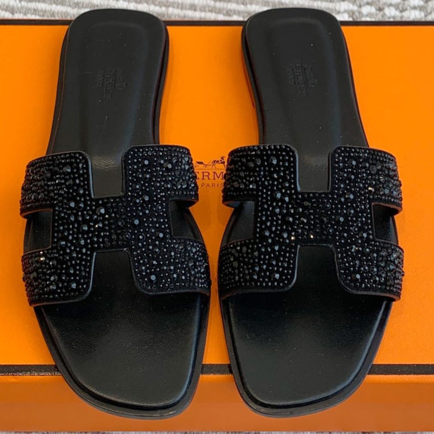 HM 25 Oran Glitter Sandal Black Calfskin