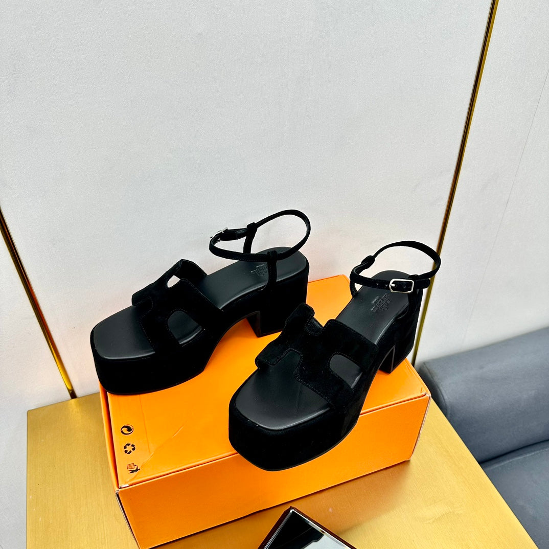 HM Platform Slingback Black Suede 370758