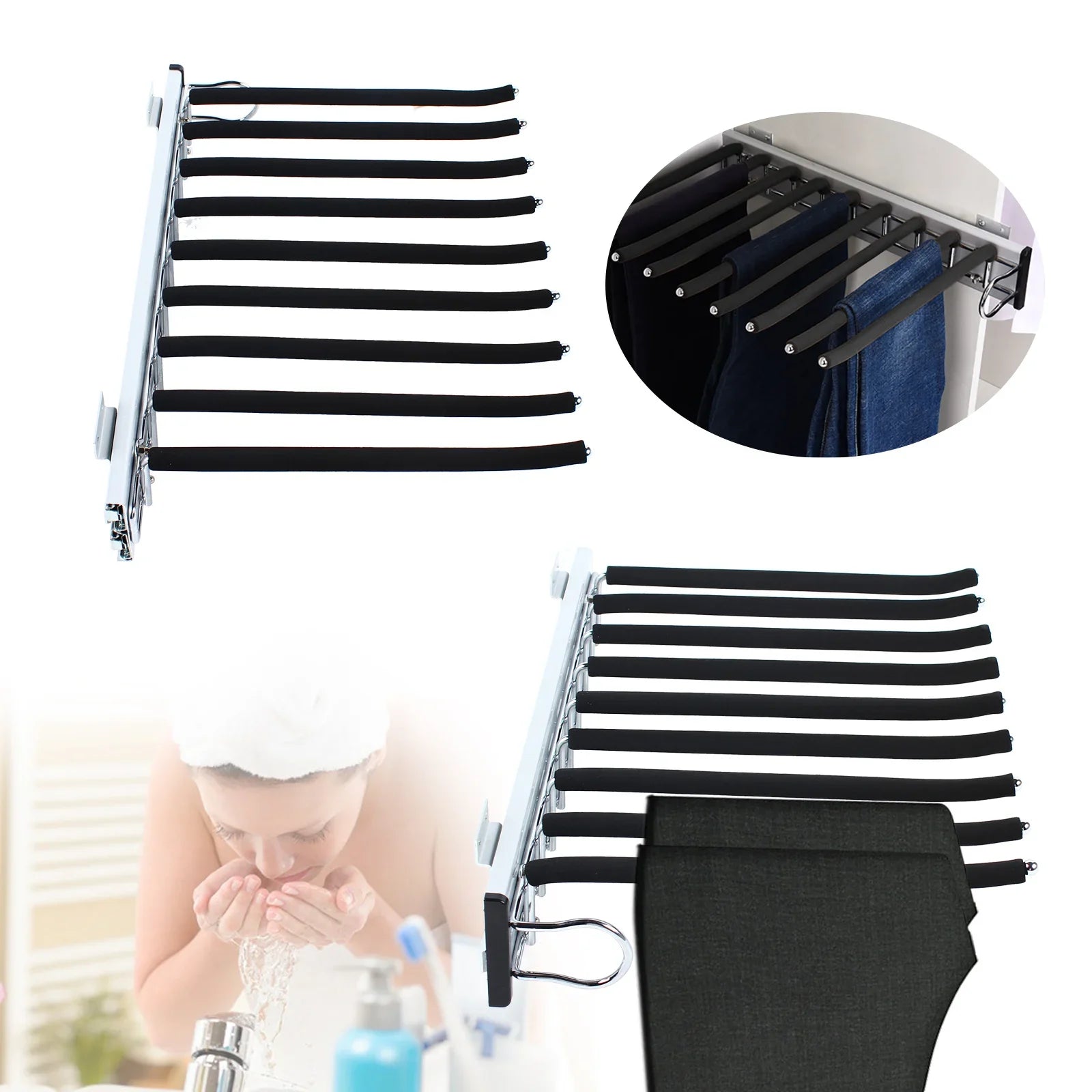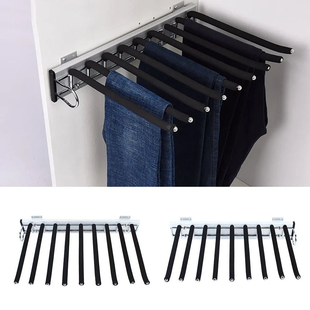 GlideRack™ Pull-Out Wardrobe Hanger – Extendable 9-Rod Trousers & Scarf Holder