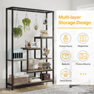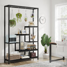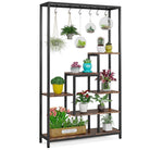 The Tribesigns indoor plant stand features a 5-tier open shelf design and a spacious layout to display over 8 regular-sized pots, small bonsai, and hanging plants with 10 included S-hooks.