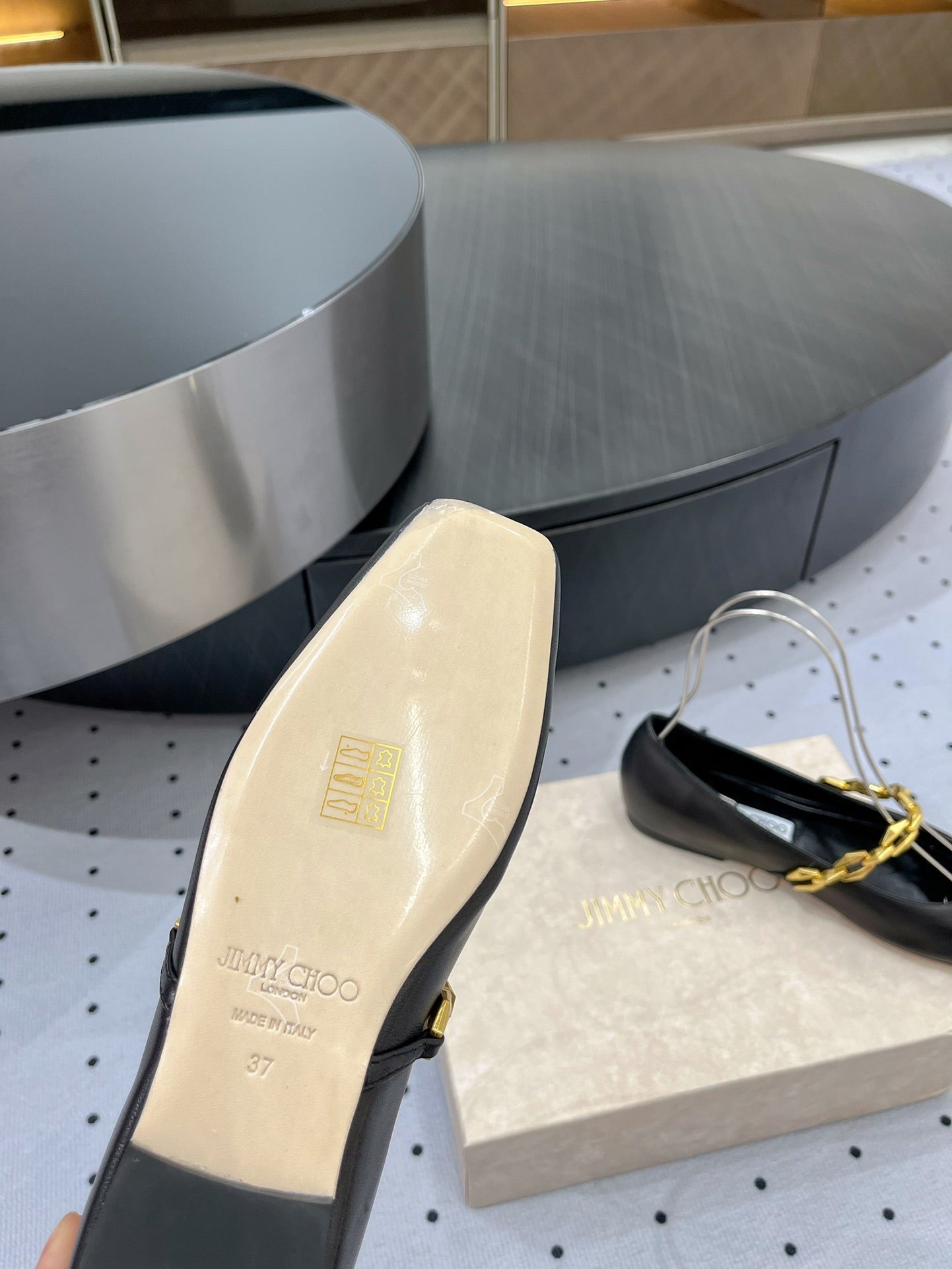 Jimmy Diamond Tilda Flat 10mm In Black Nappa Leather Flats With Chain 591607