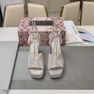 Jimmy 25 Platform Sandal Heels Beige Satin Fabric 240015