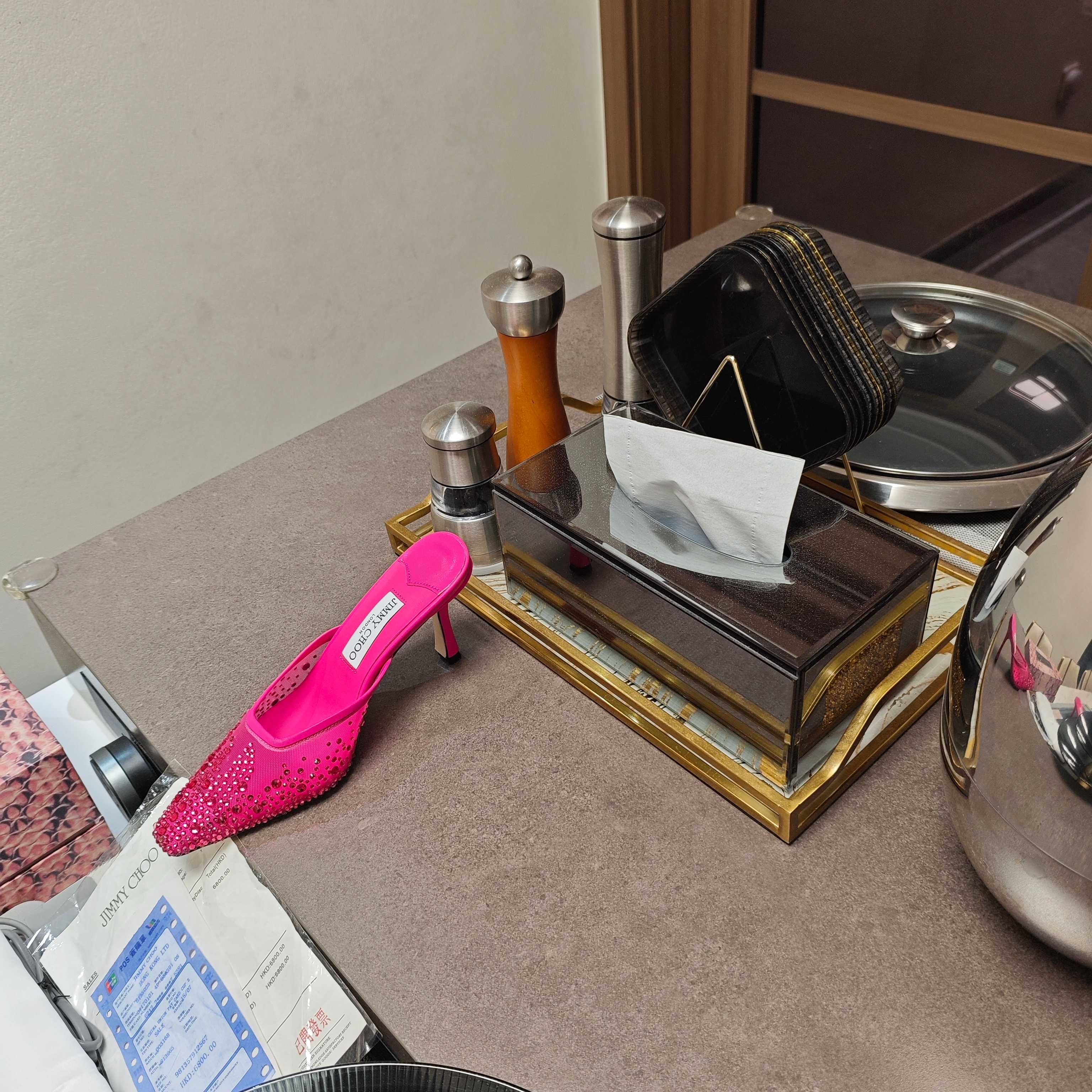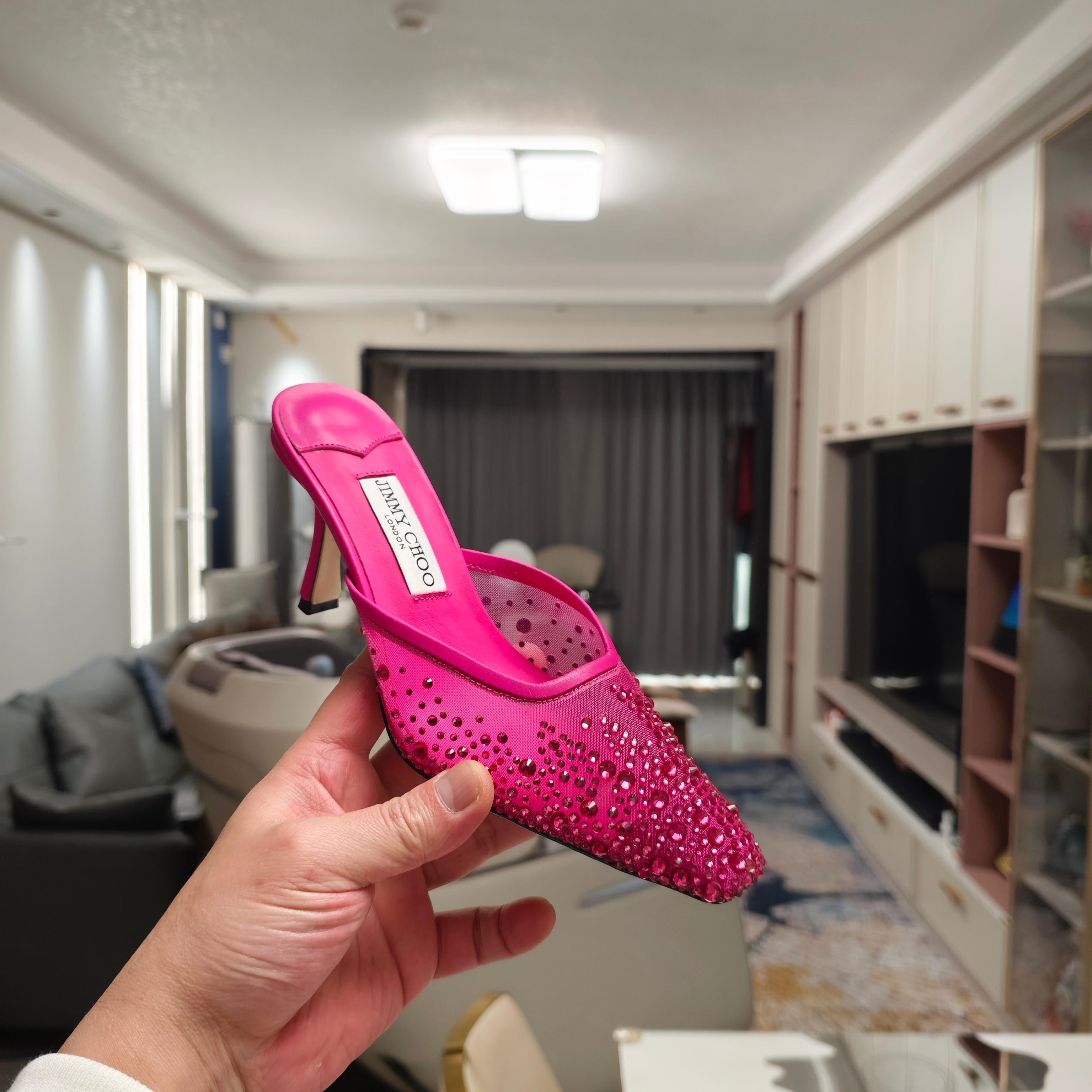 Jimmy 25 Vivi 100 Mule Deep Pink Mesh Gauze 240054