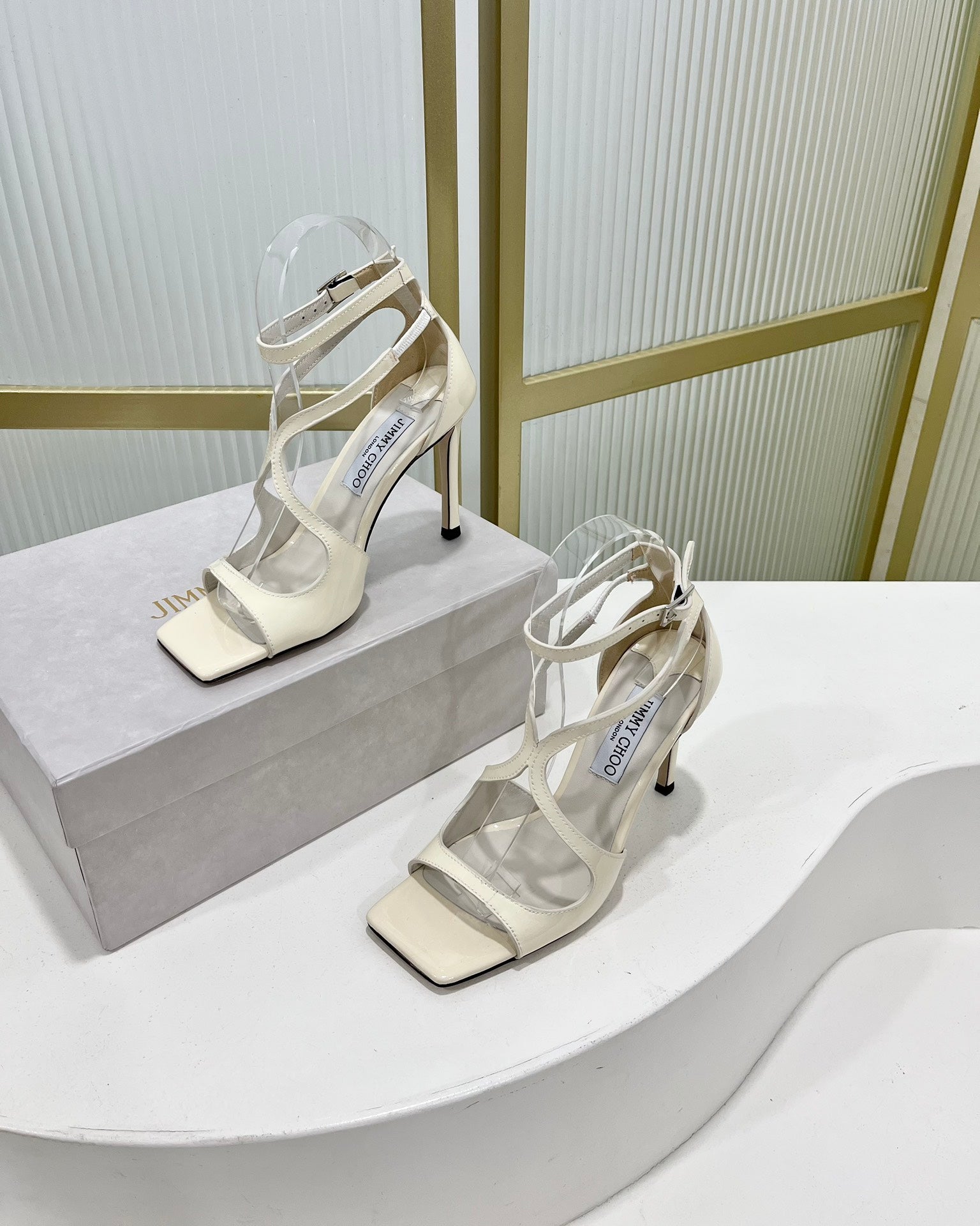 Jimmy Azia 95 In White Glossy Cowhide Sandals 587705
