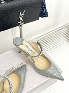 Jimmy Bing 65mm In Grey Black Stone Studded Cowhide Mules 593196