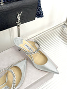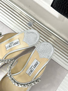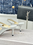 Jimmy Bing 65mm In White Silver Stone Studded Cowhide Mules 593194
