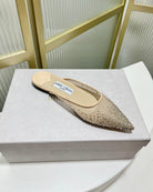Jimmy Mule In Beige Mesh Fabric With Swarovski Crystal 597879