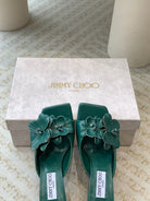 Jimmy Skye 70mm In Dark Green Cowhide Mules 586566