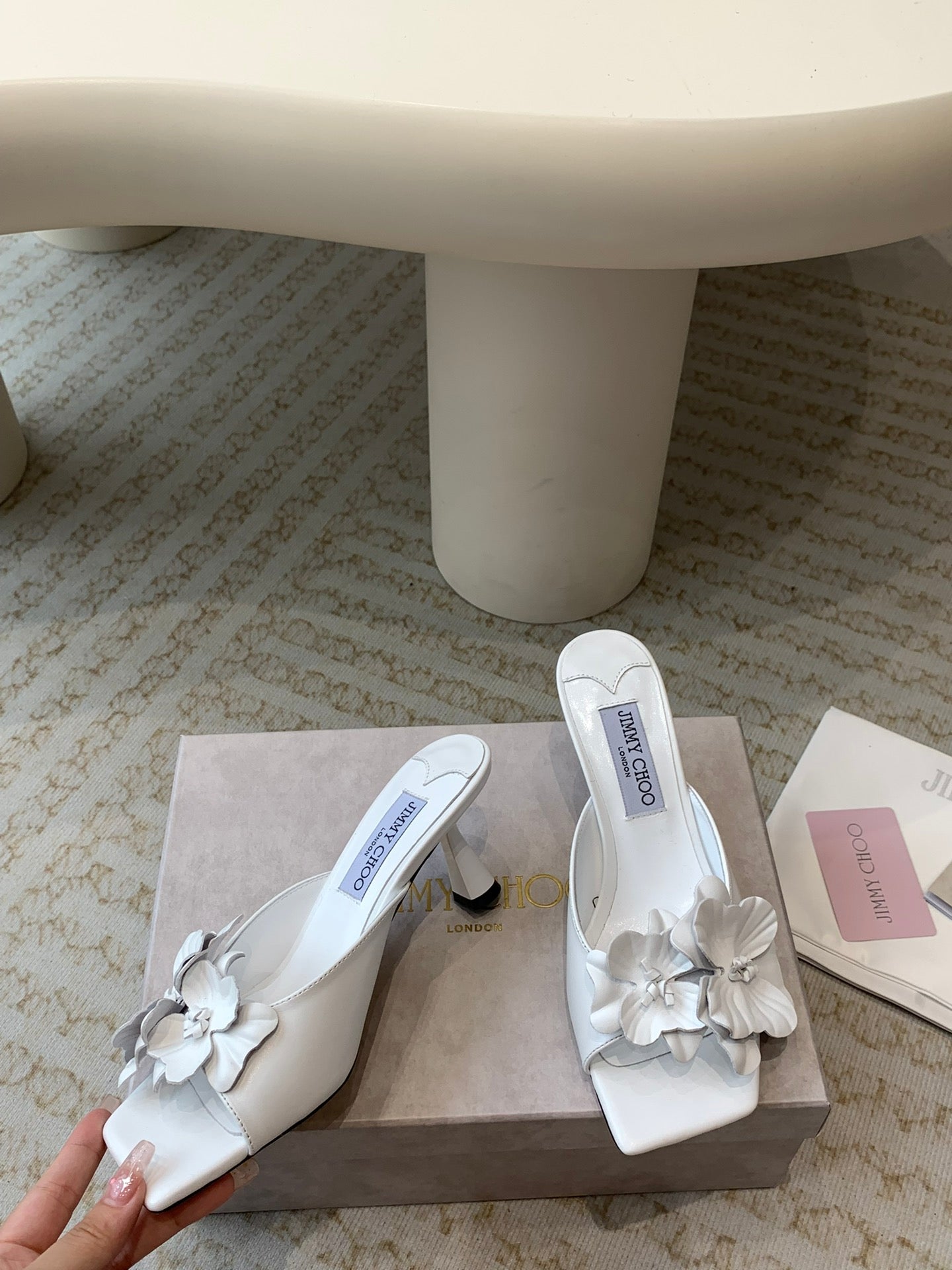 Jimmy Skye 70mm In White Cowhide Mules 586564