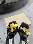 Jimmy Zea 95 In Black Cowhide Sandals With Metal Flowers 591586