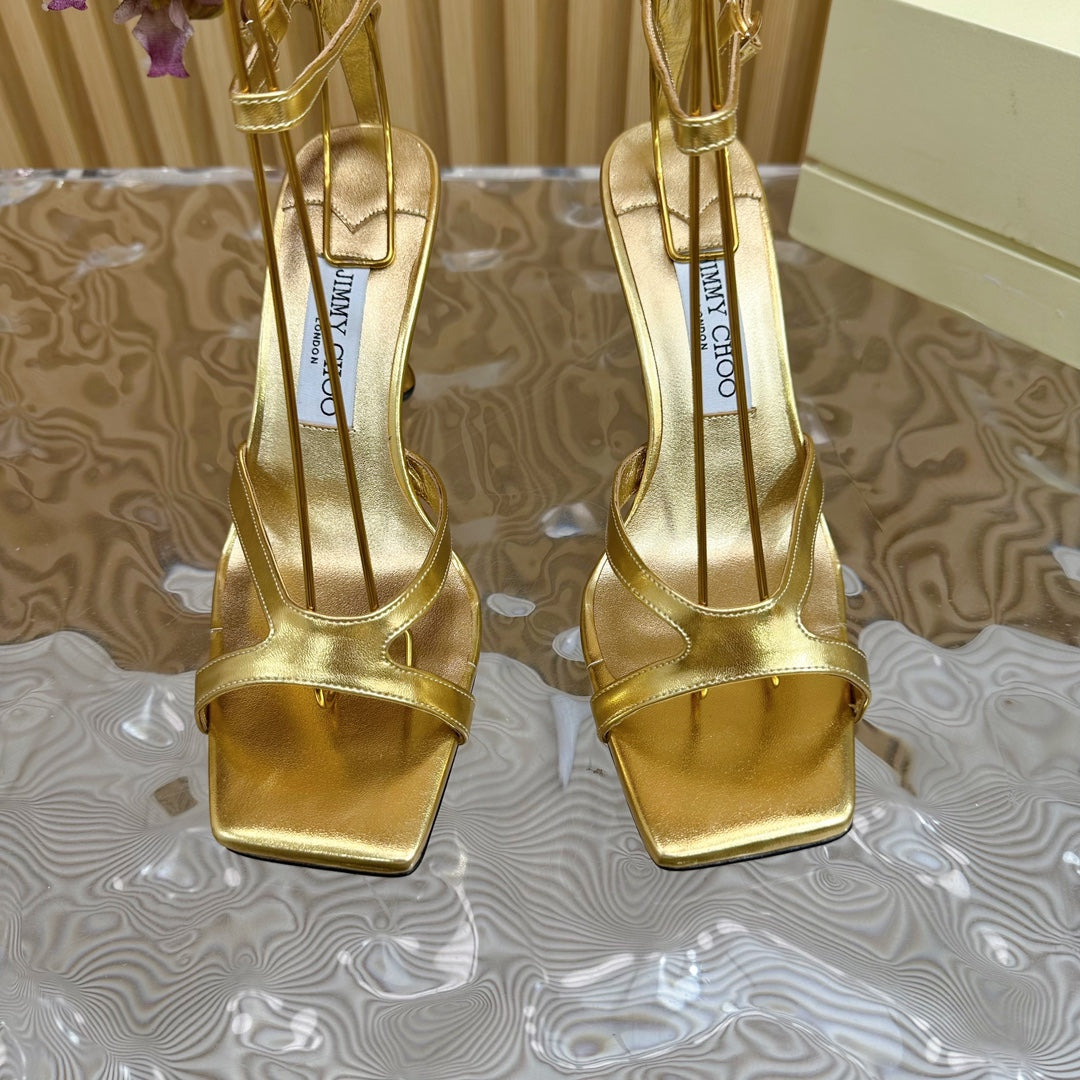 Jimmy Azie 85 In Gold Cowhide Sandals 581517