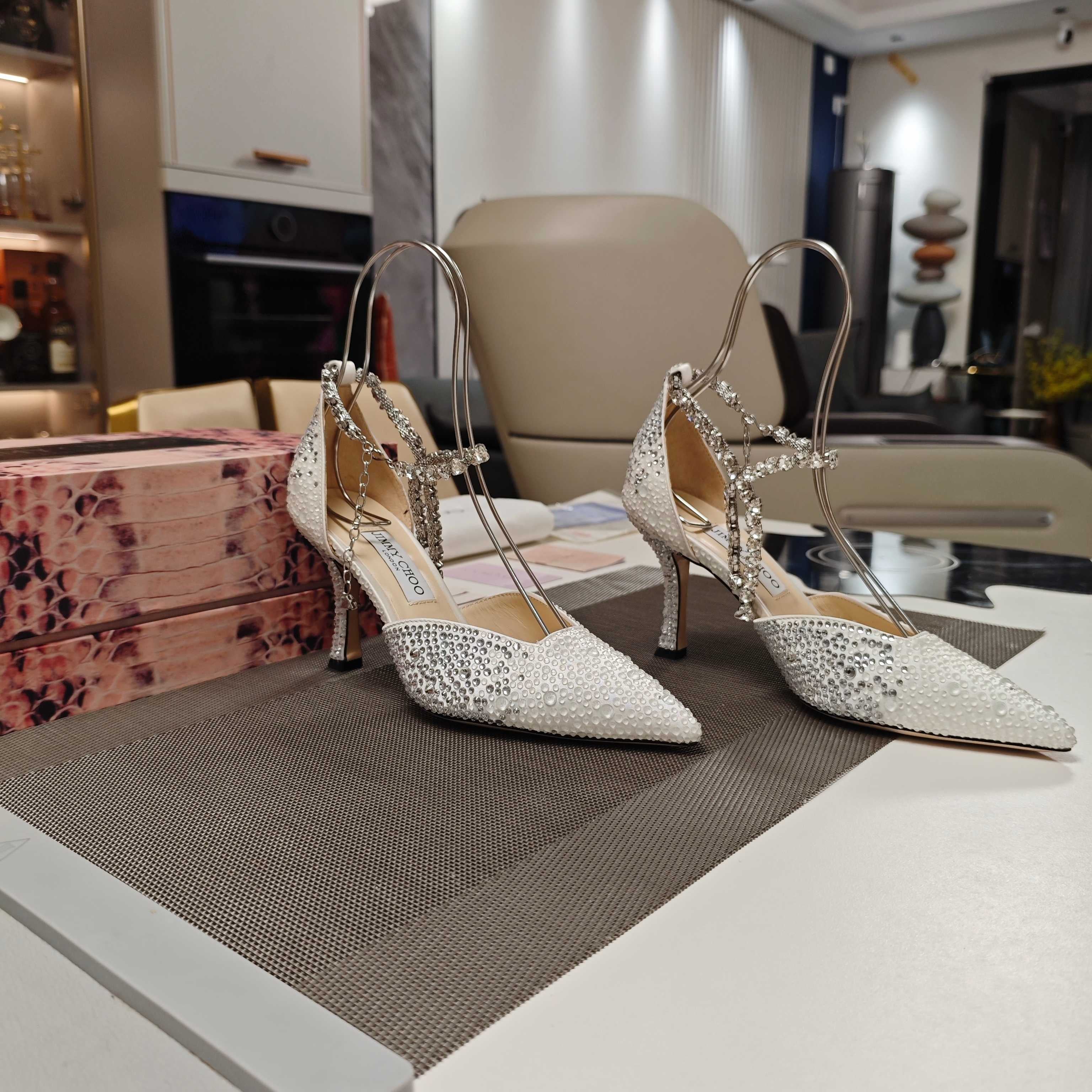 Jimmy Saeda 100mm In White Silver Satin Pumps With Crystal Embellishment 641056