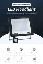 Upgrade your outdoor lighting with the **LED PIR Motion Sensor Flood Light**, designed for high-performance illumination and security. Available in multiple wattage options (10W-300W), this floodlight is **IP66 waterproof**, making it ideal for gardens, driveways, and building exteriors. The **built-in radar sensor** intelligently detects motion and activates lighting only in darkness.