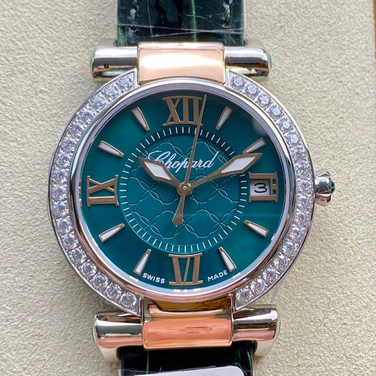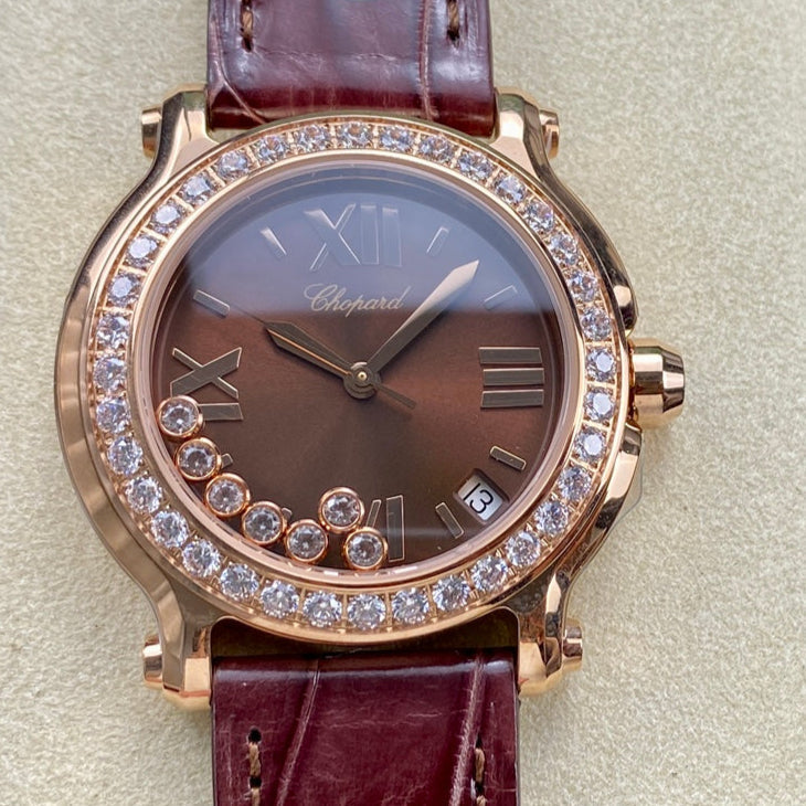 Happy Diamonds 30mm Pink Gold Blue Dial