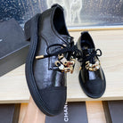 CC COMBAT OXFORD SHOES IN BLACK WRINKLED CALFSKIN AND GROSGRAIN WITH FAUX PEARL