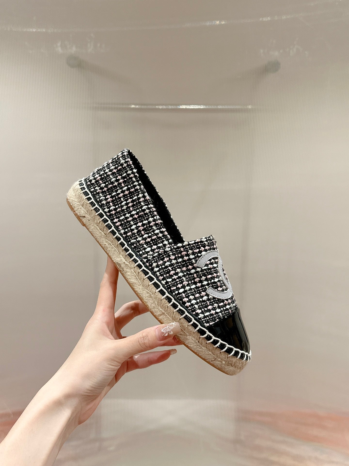 cc espadrilles black red blended fabrics black patent calfskin