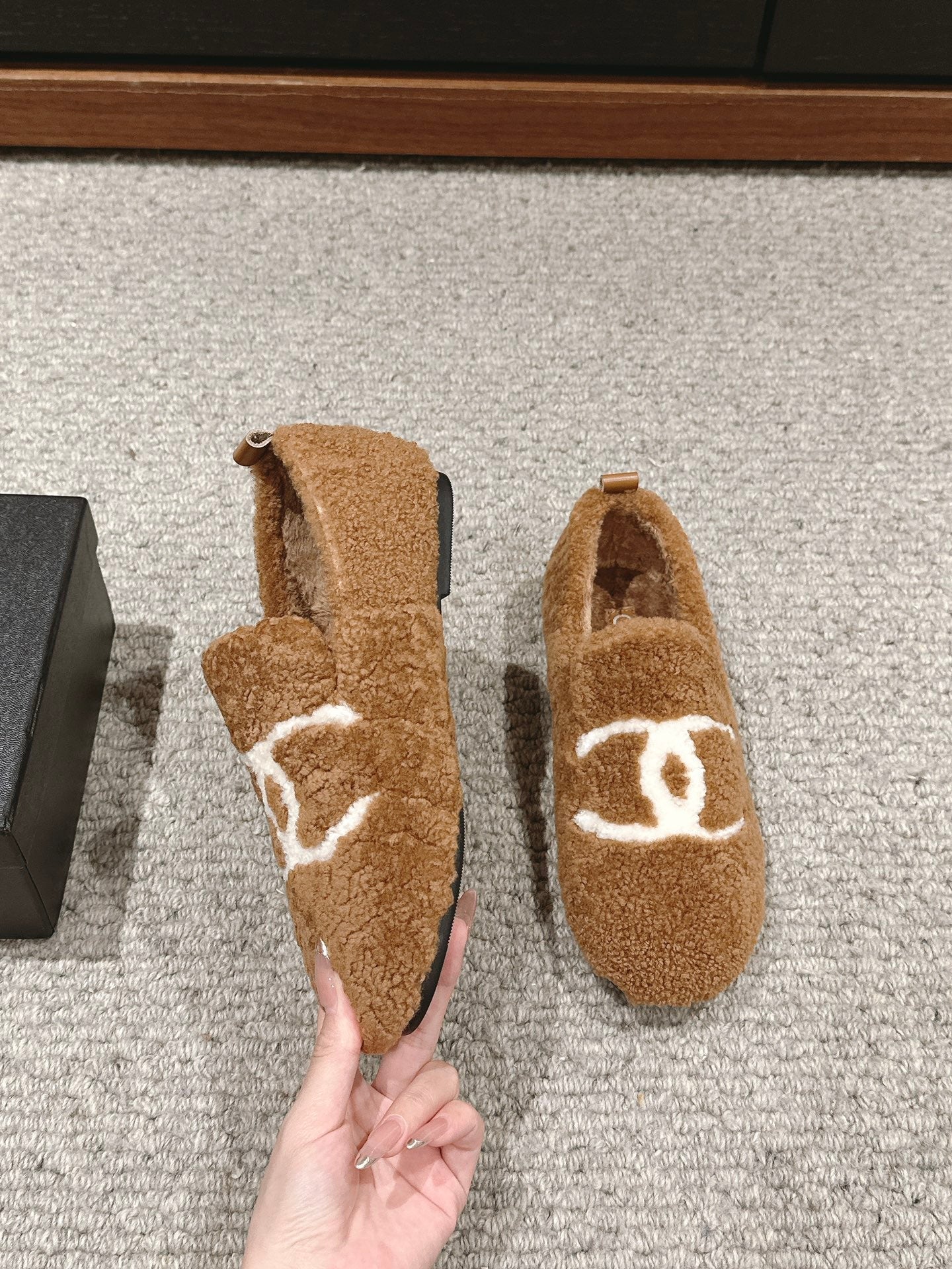 CC LOAFERS IN CINNAMON BROWN FLEECE WITH WHITE LOGO