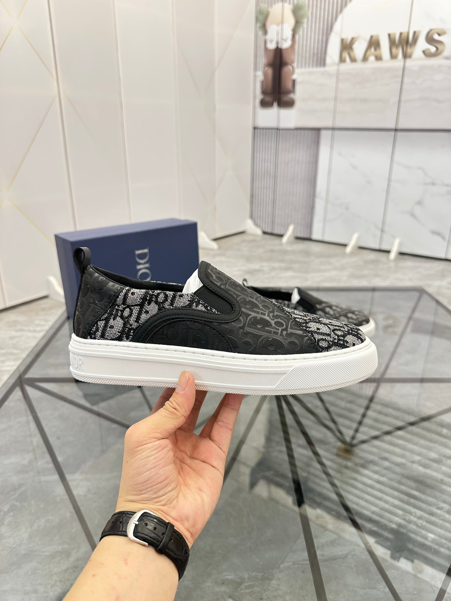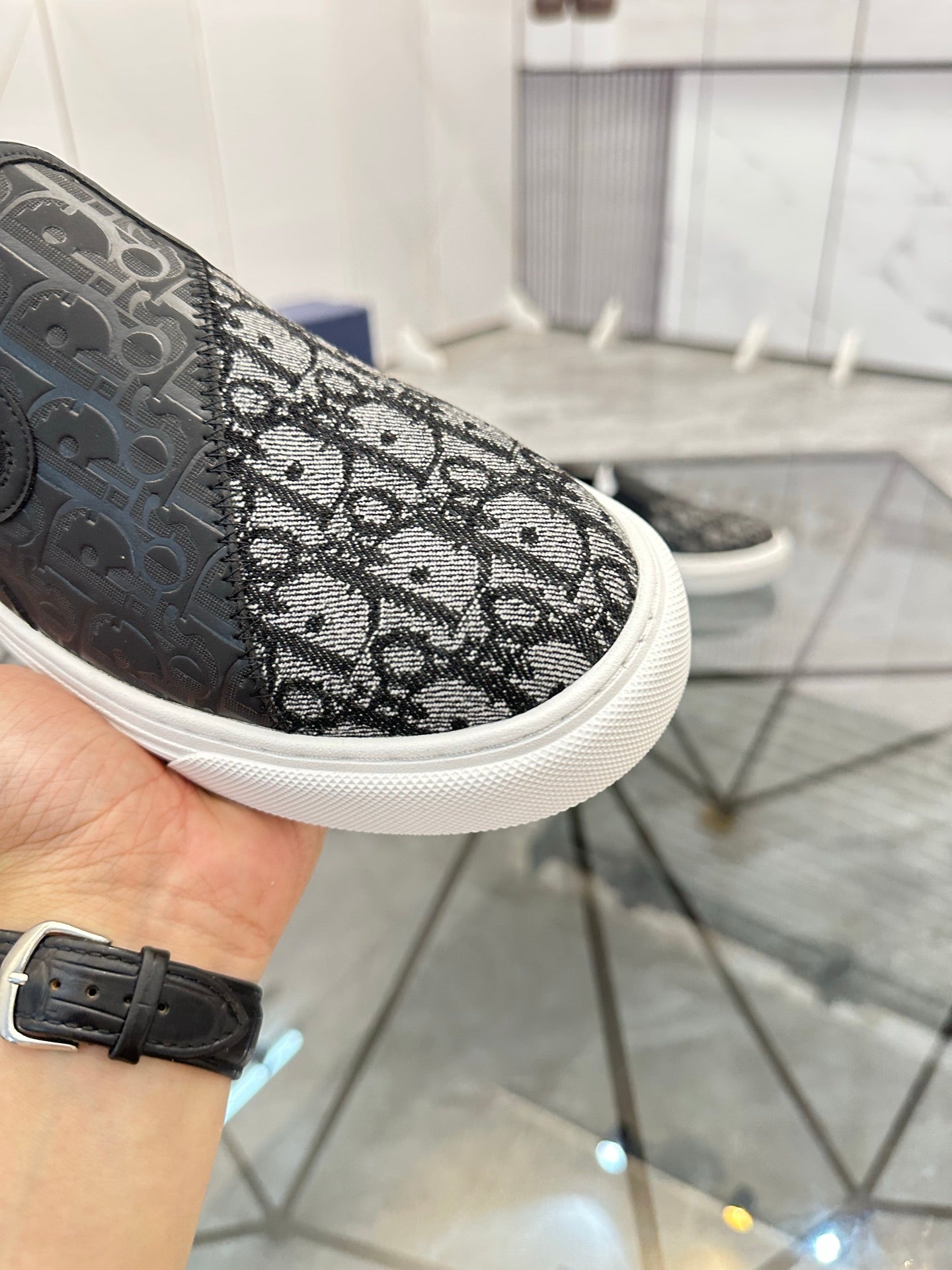 CD Slip on loafer Black Cowhide Fabric 647998