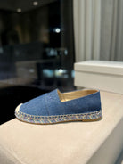 CHLOÉ LOAFERS IN NAVY BLUE FABRIC AND RAFFIA