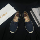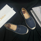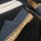 CHLOÉ WOVEN LOAFER IN BLACK DENIM AND COLORFUL RAFFIA