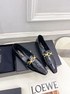 FLAT LOAFERS WITH GOLD CHAIN IN BLACK GLOSSY CALFSKIN