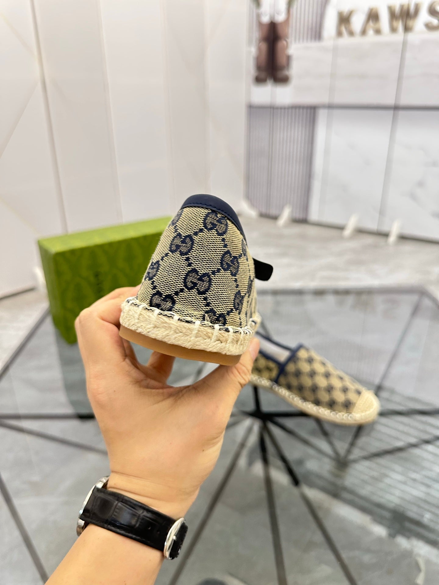 GG Men's Espadrilles Loafer Blue Canvas 738106