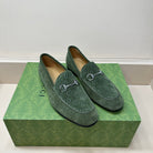 GG Men's Horsebit Loafer Green Suede 575869