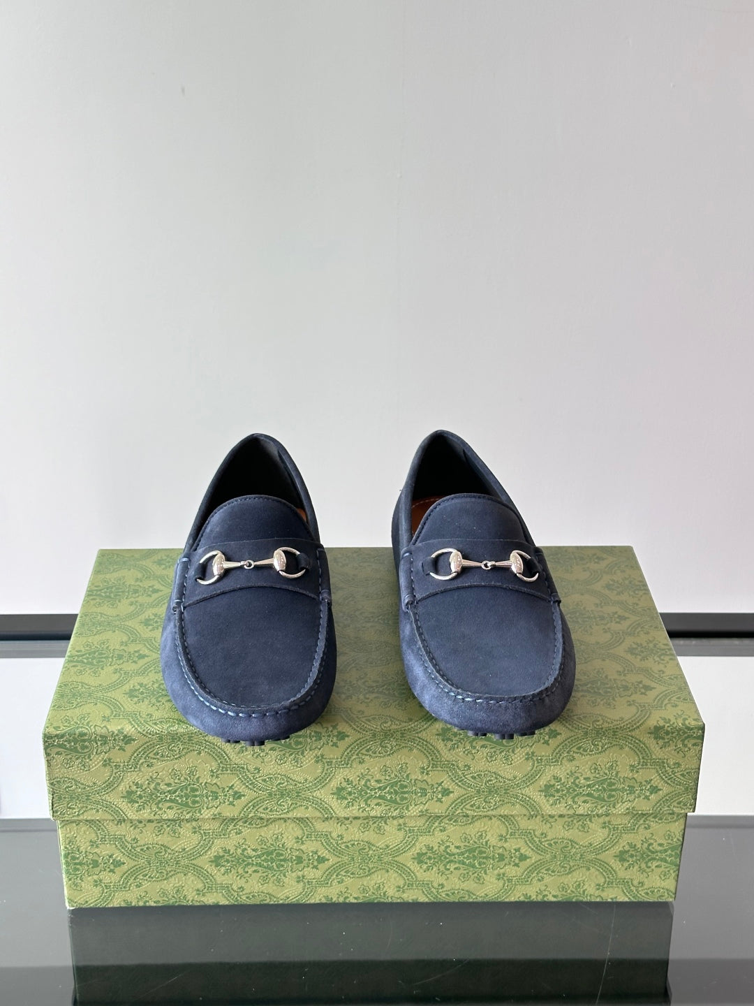 GG Men's Horsebit Loafer Navy Blue Suede 543472