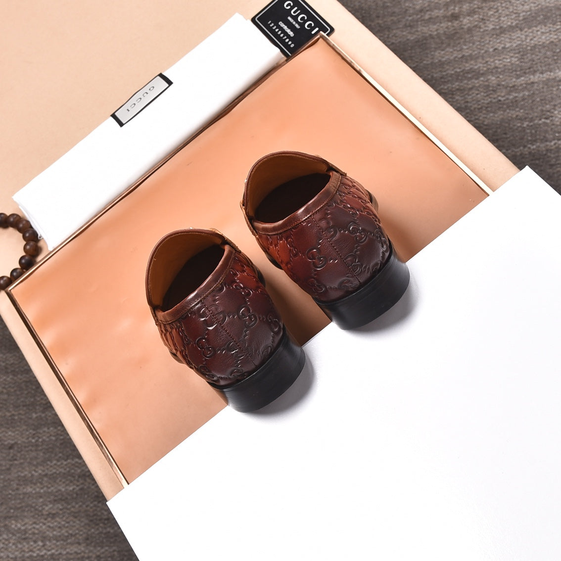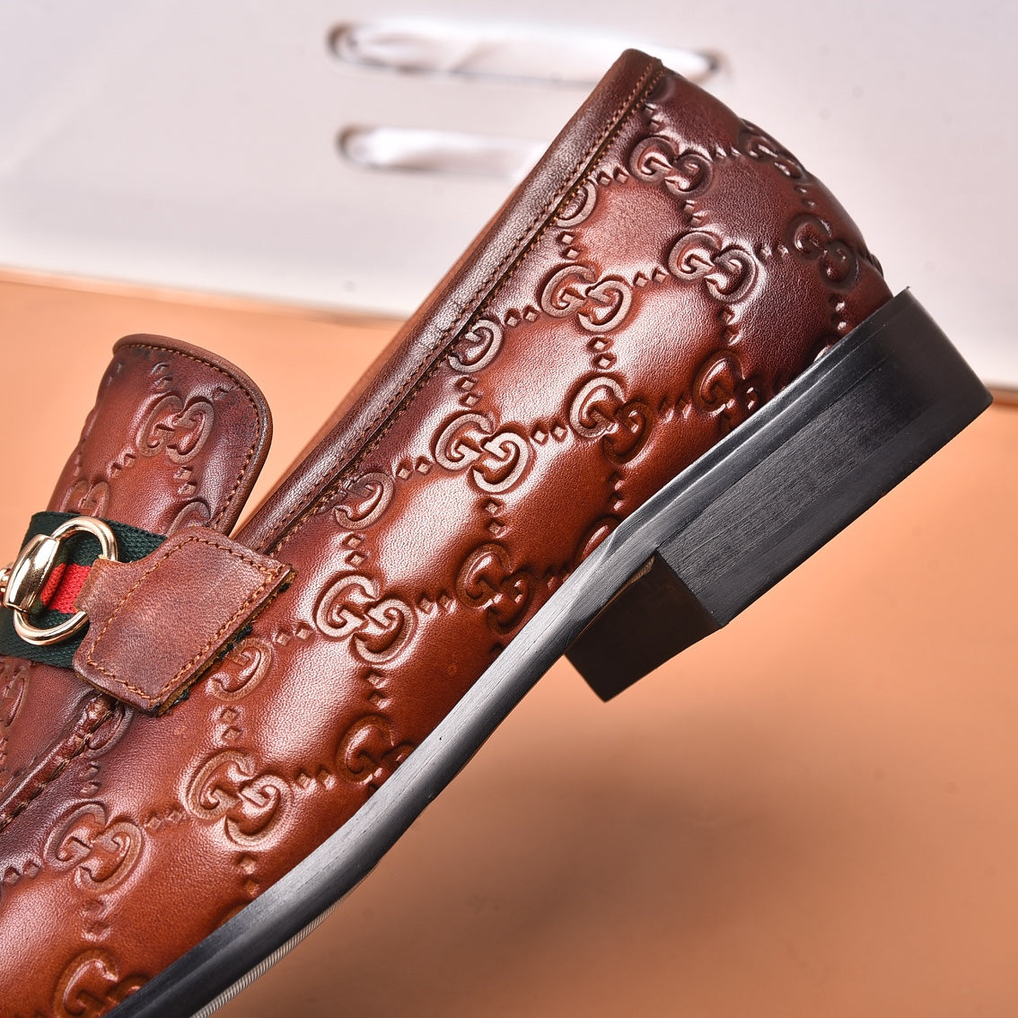 GG Men's Loafer Brown Embossed Cowhide 538714