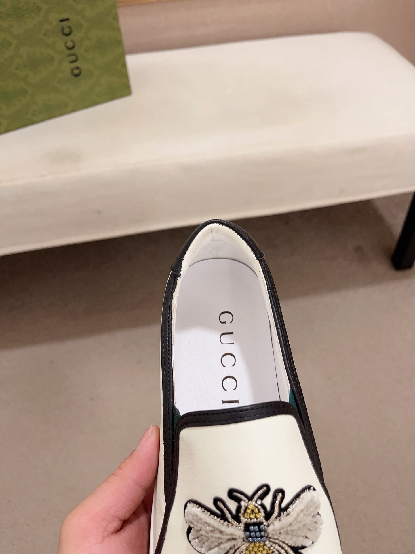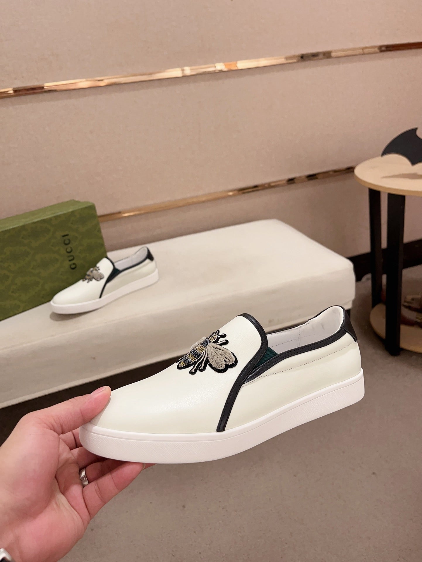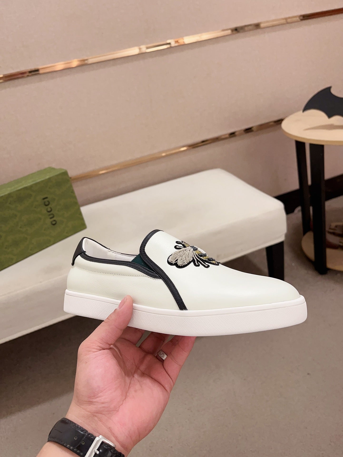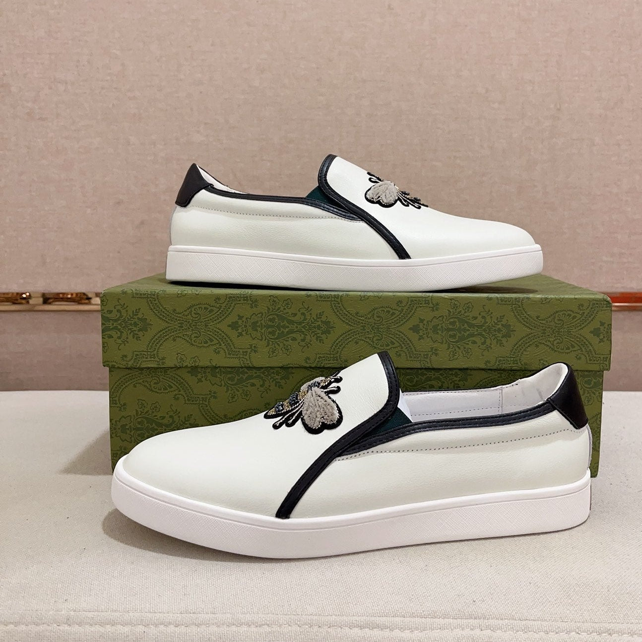 GG Men's Slip on Bee White Cowhide 533940