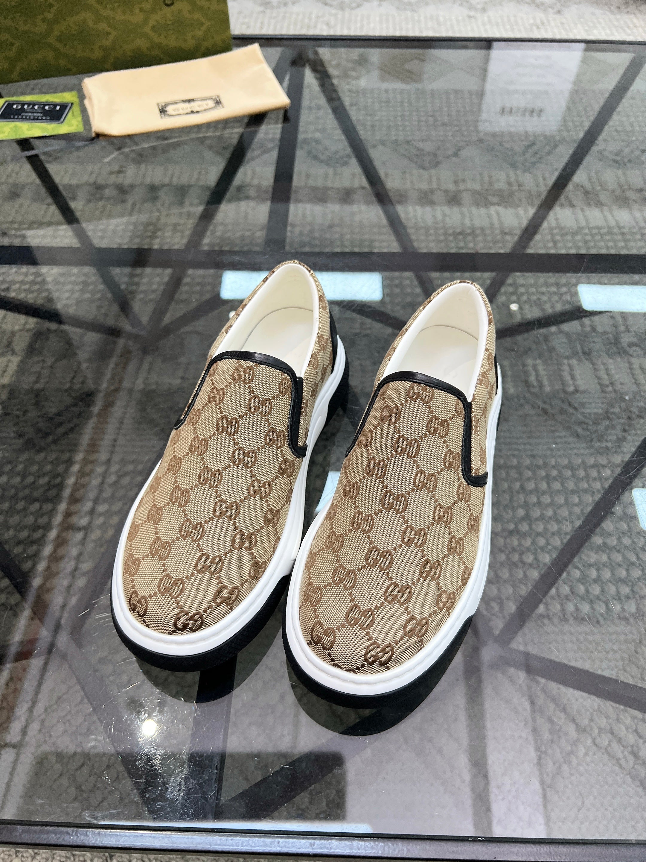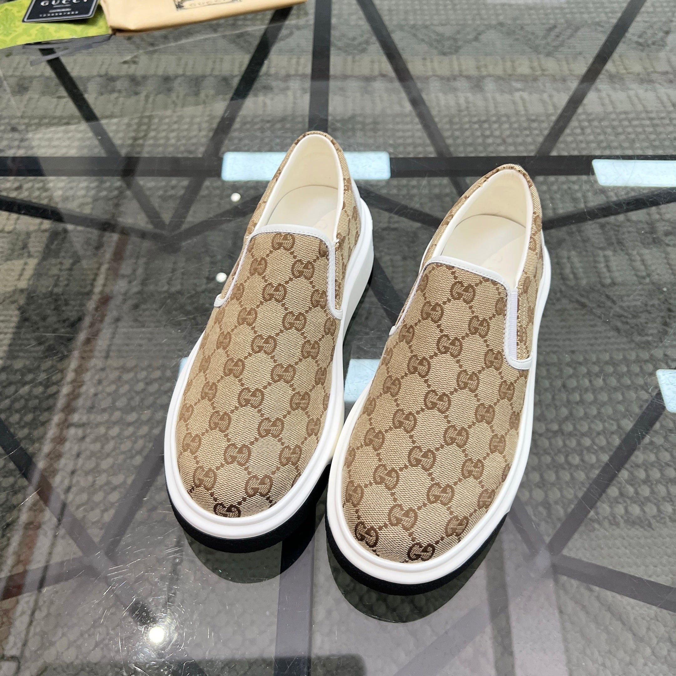 GG Men's Slip on Loafer Brown Printed Fabric 721584