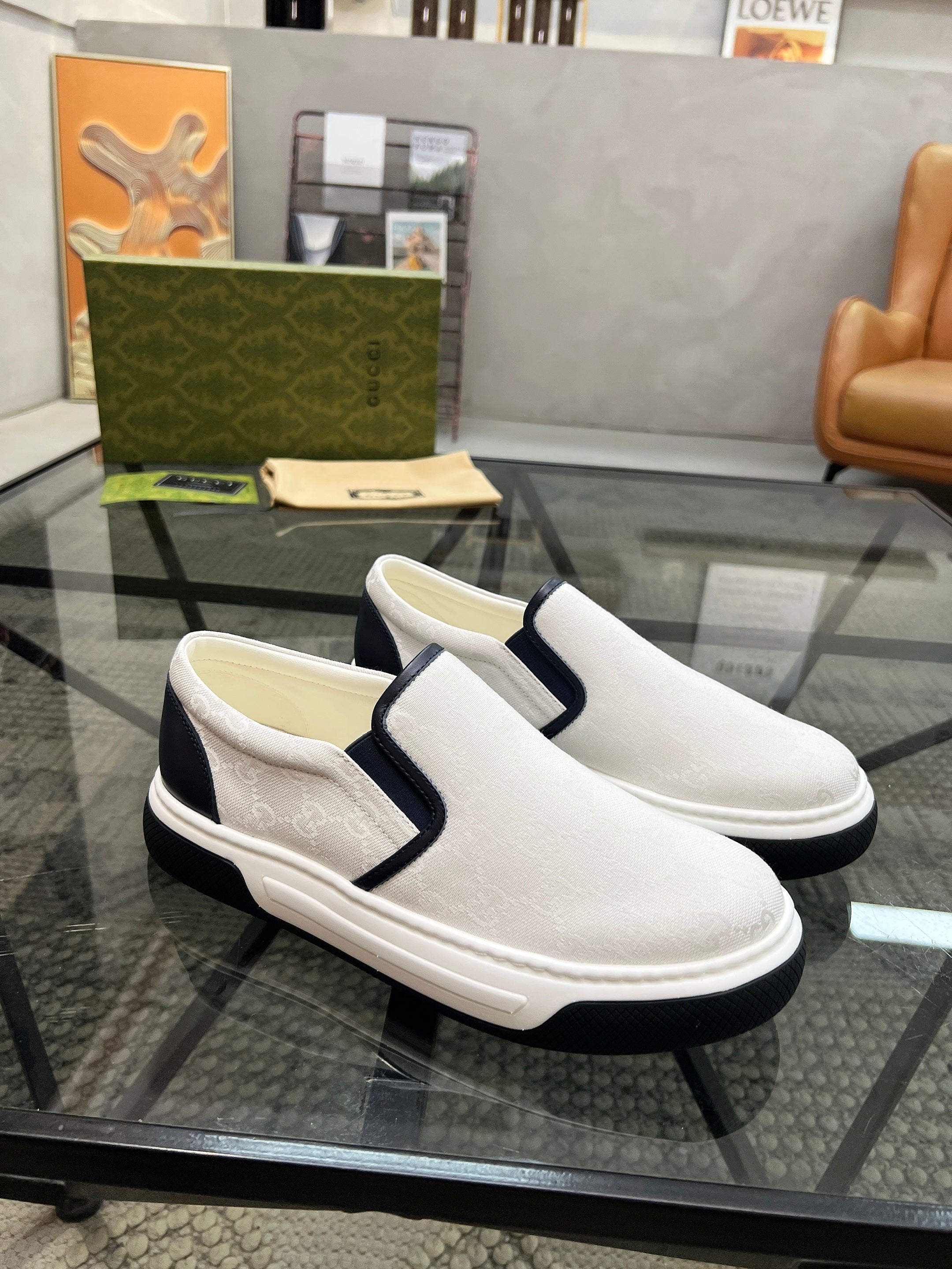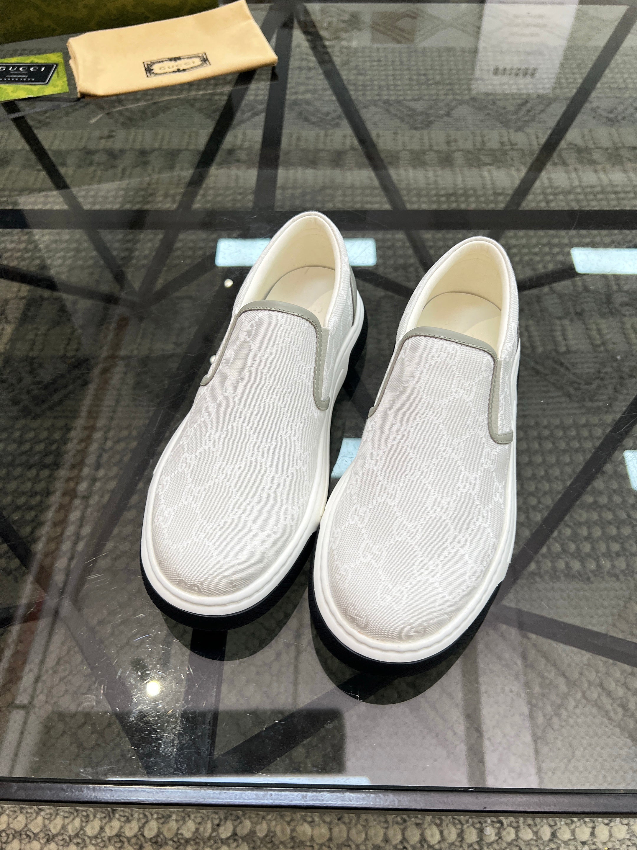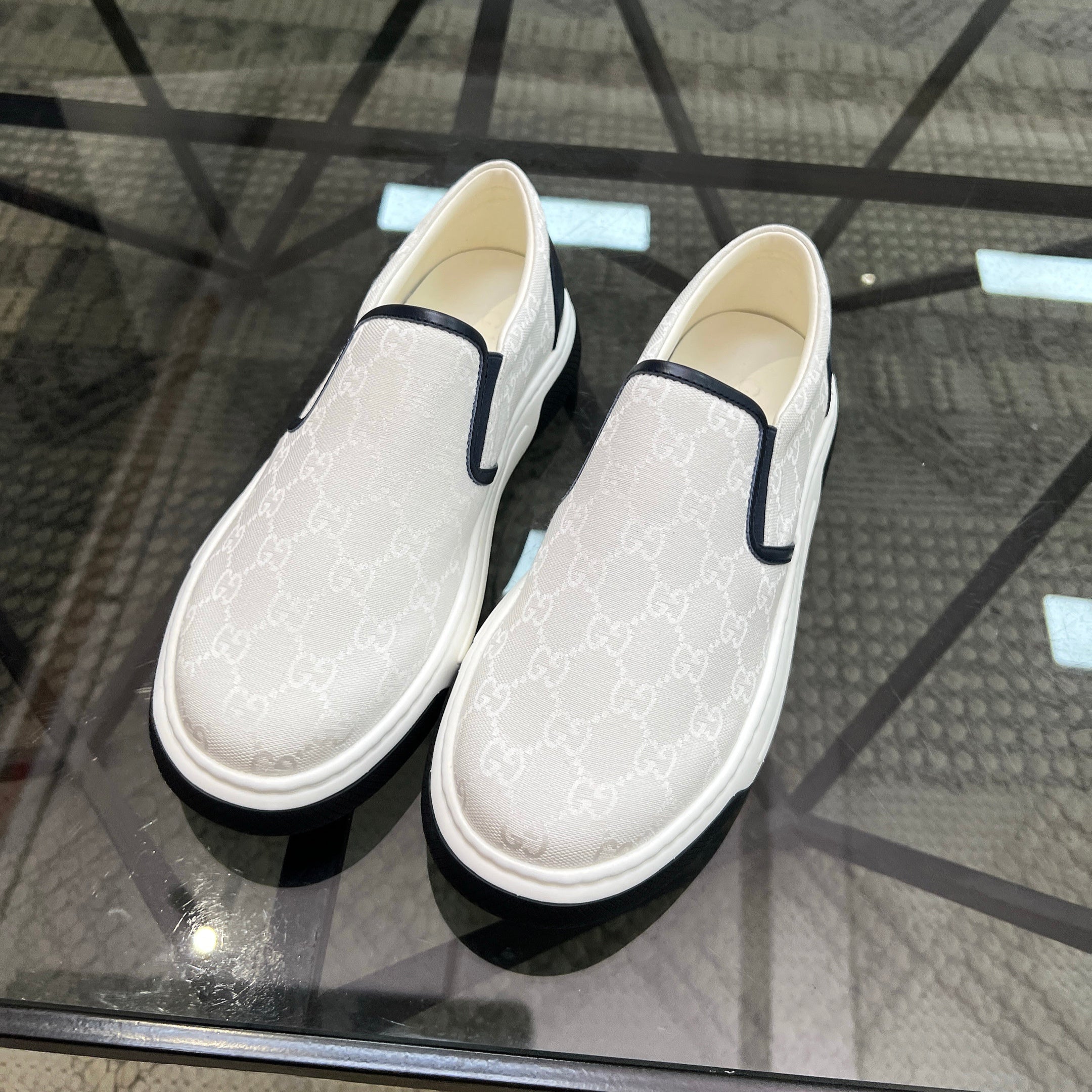 GG Men's Slip on Loafer White Printed Fabric 721523