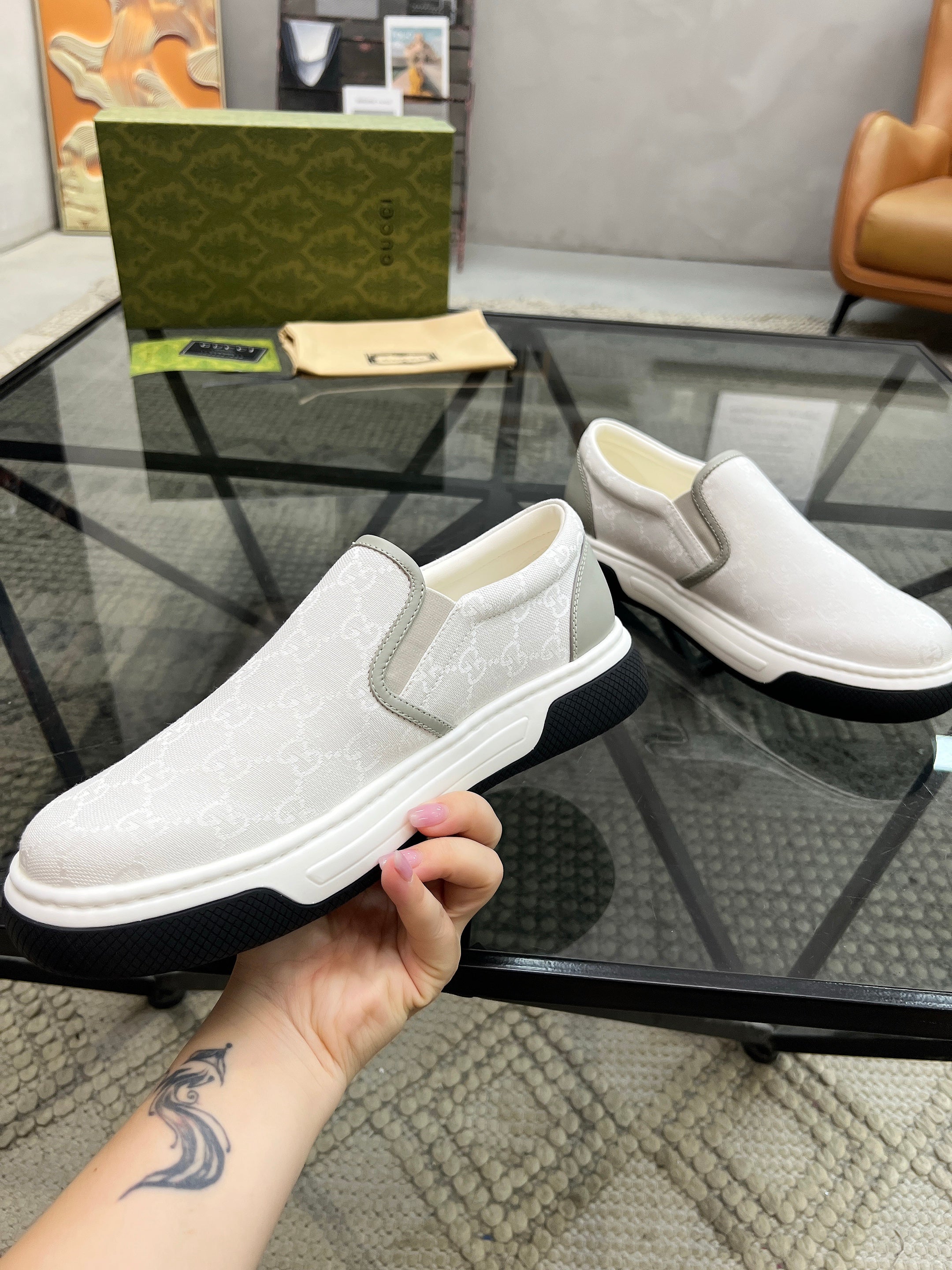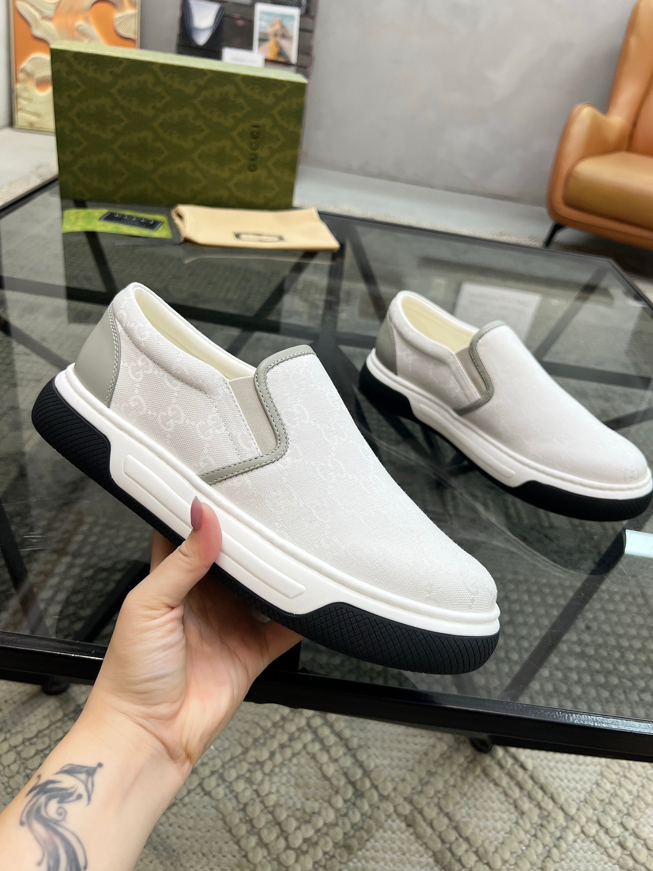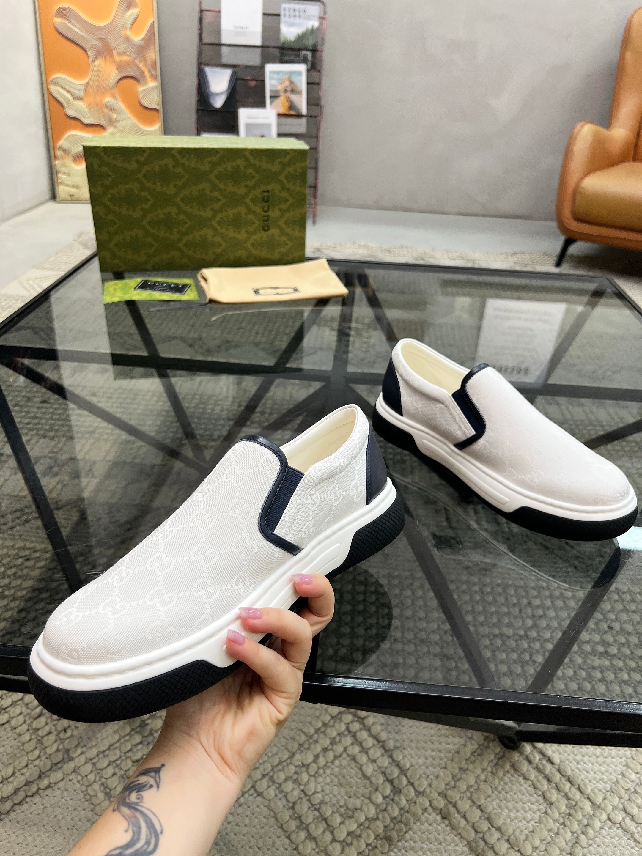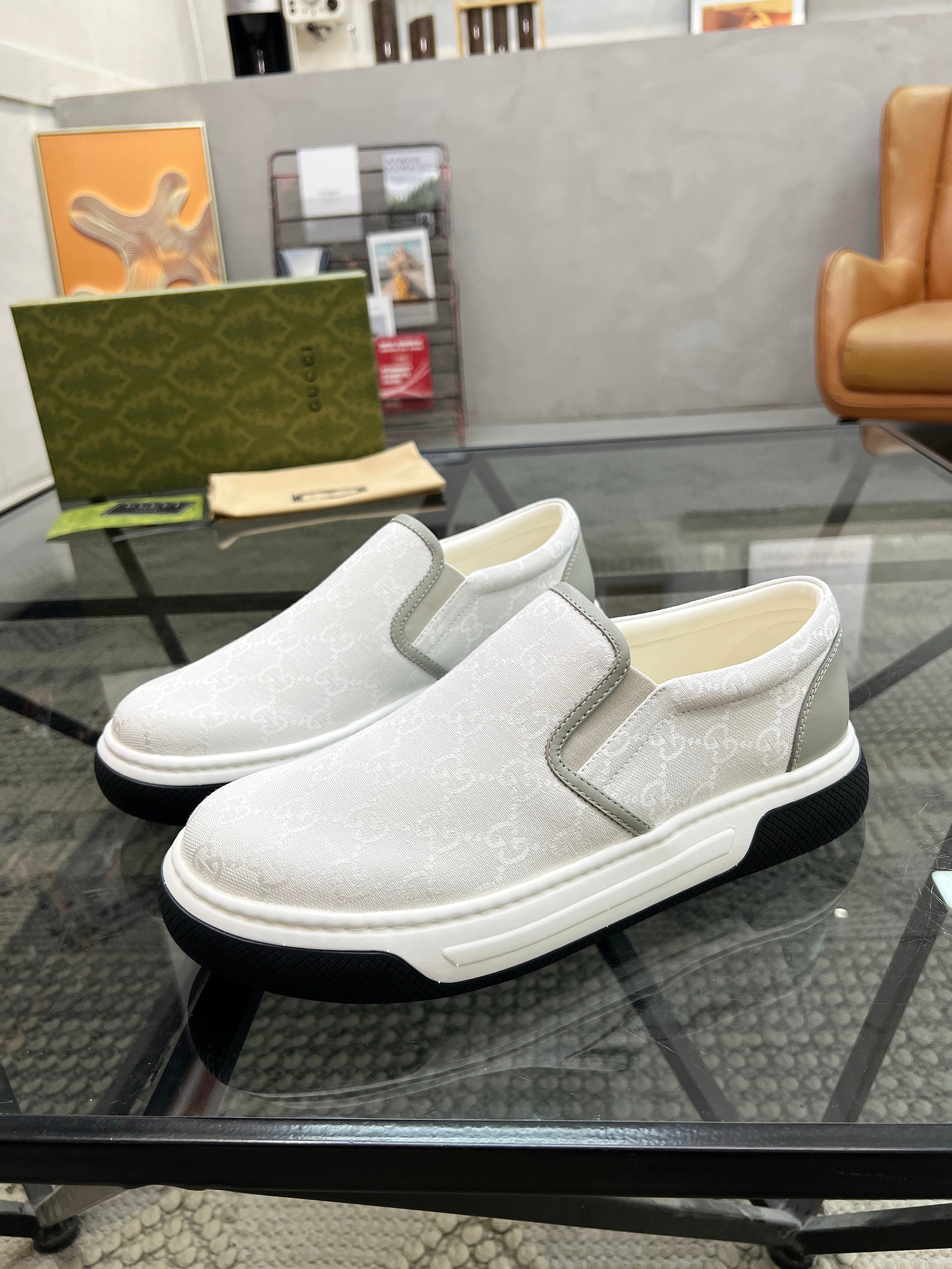GG Men's Slip on Loafer White Printed Fabric 721523