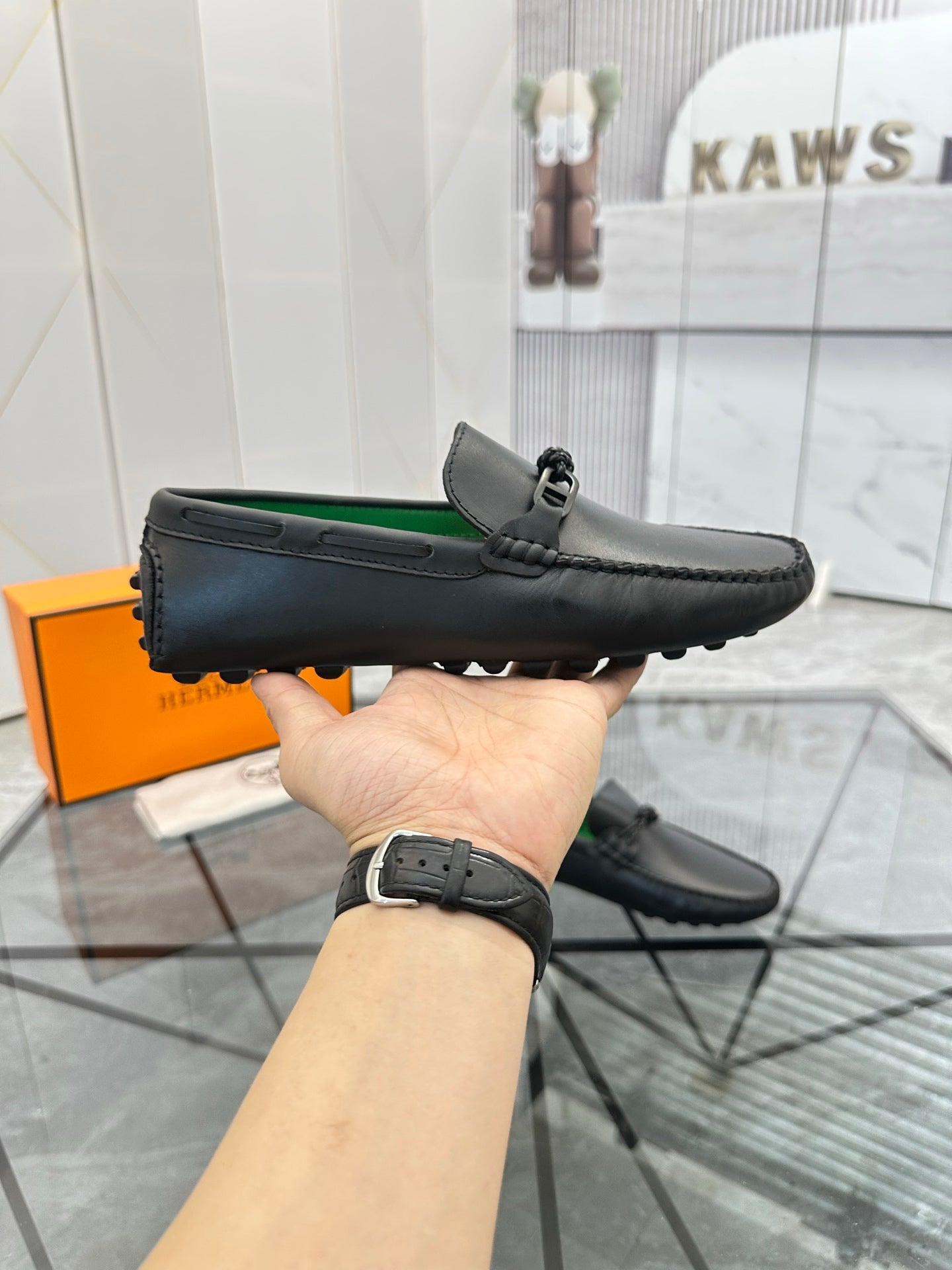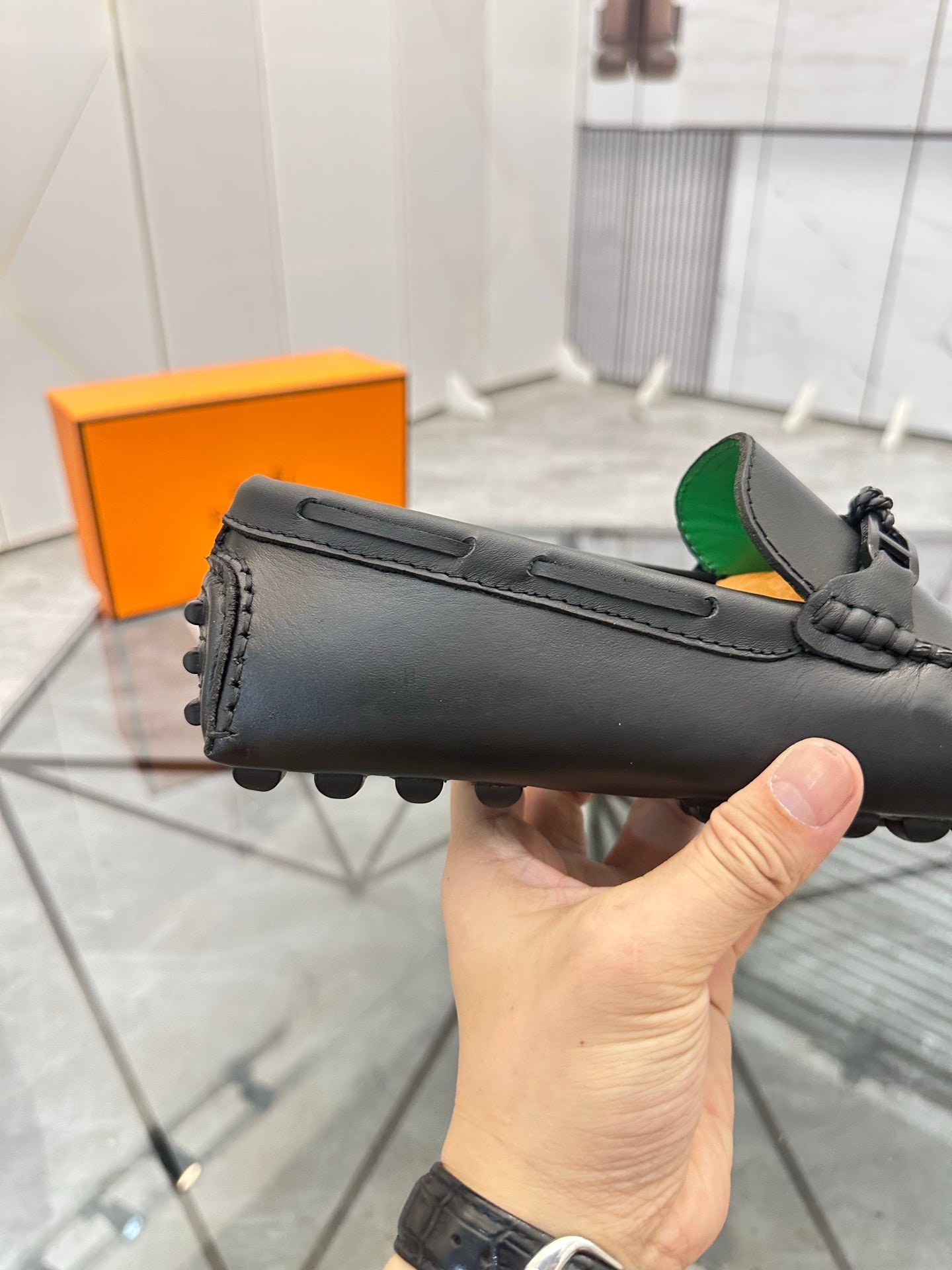 HM Men's Alessandro Loafer Black Green Cowhide 697694