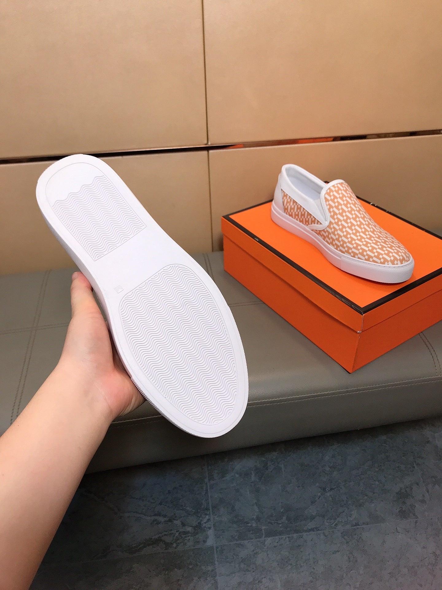 HM Men's Loafer Orange Printed Fabrics Rubber 590007