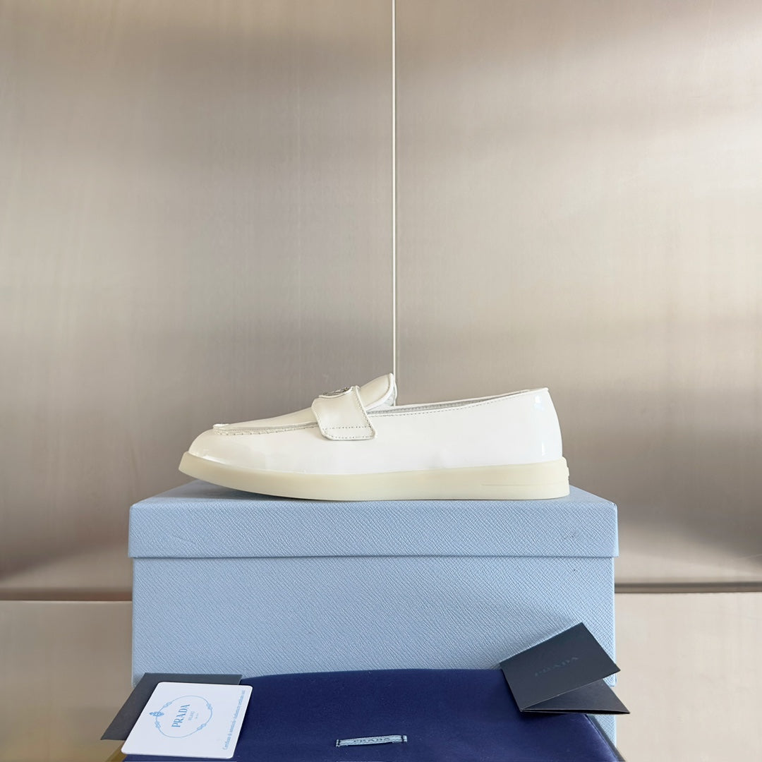 Pra White Patent Leather Loafers 25mm Rubber Sole