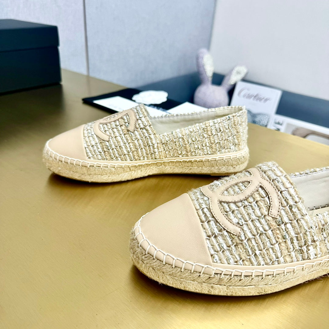 espadrilles white tweed light beige calfskin