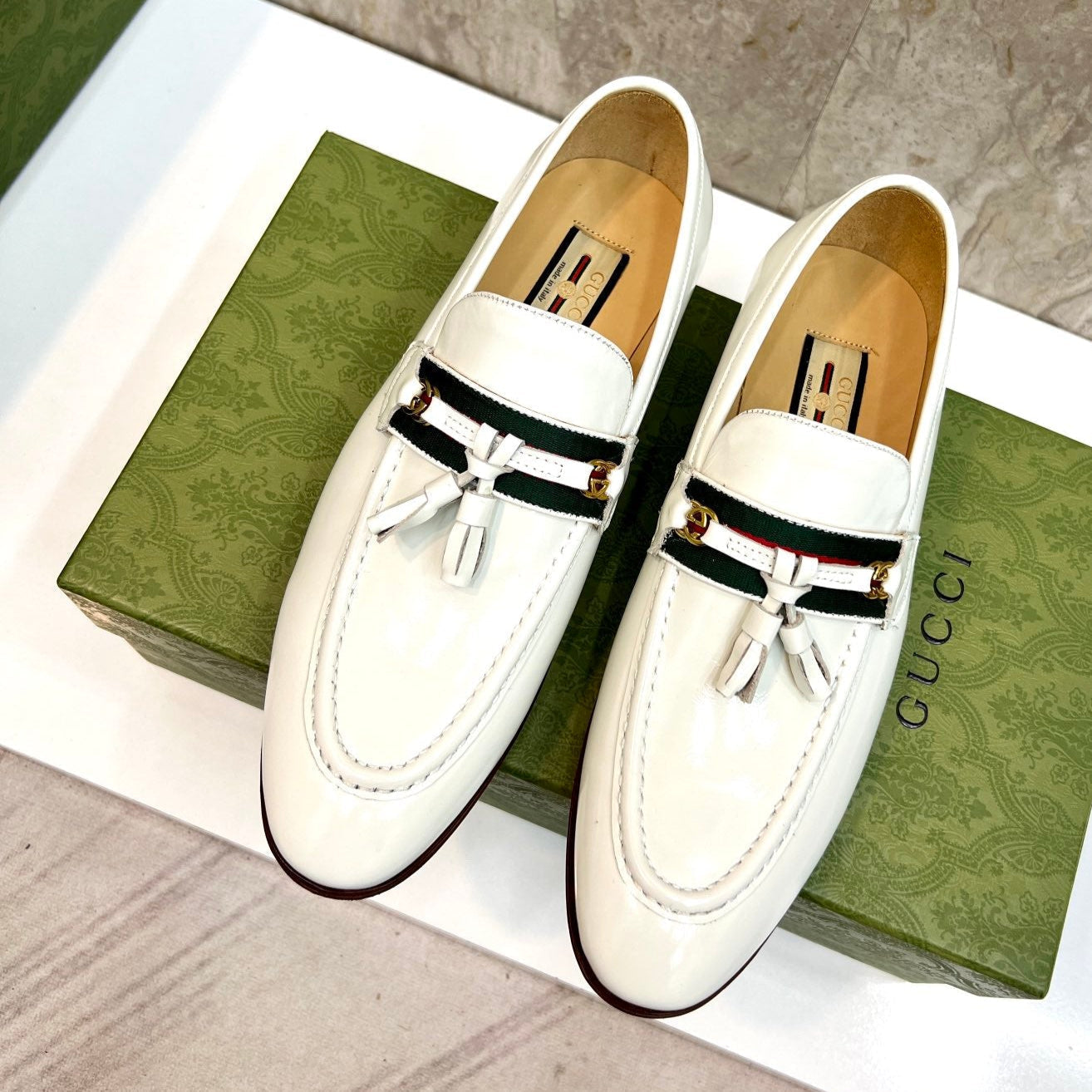 GG Men's Tassel Loafer White Black Patent Leather 548747