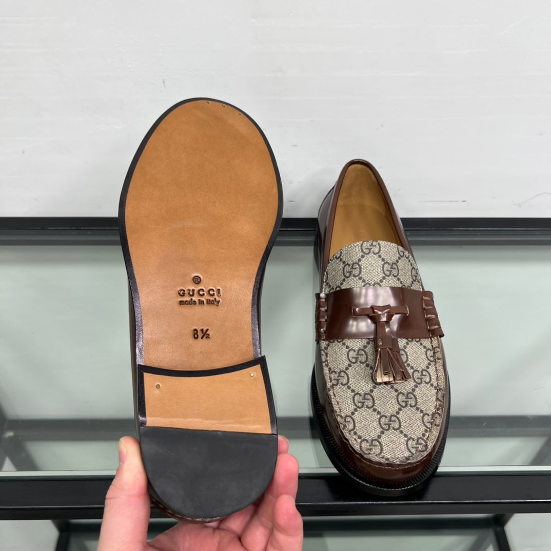 GG Men's Tassel Loafer Brown Cowhide Canvas 548740